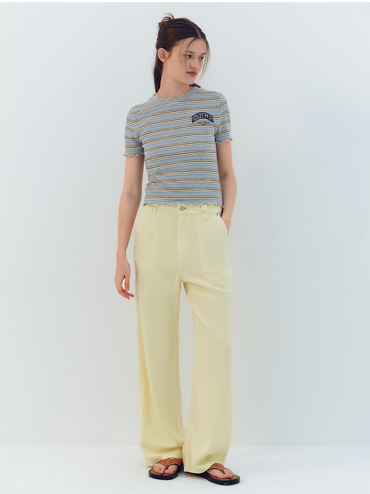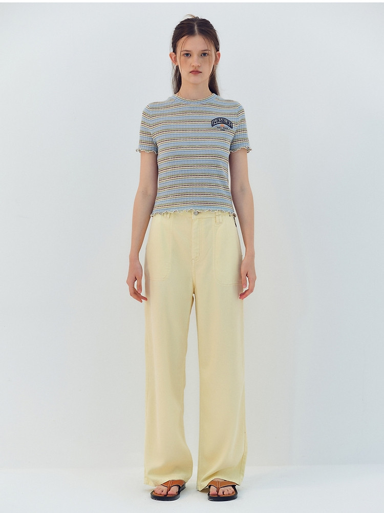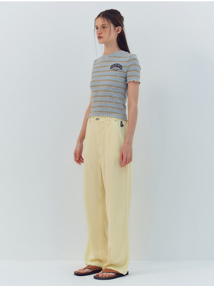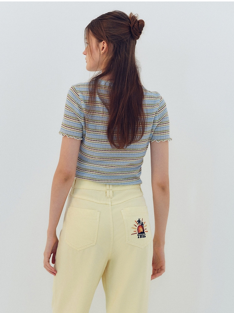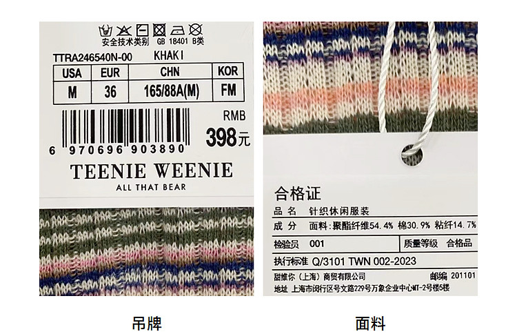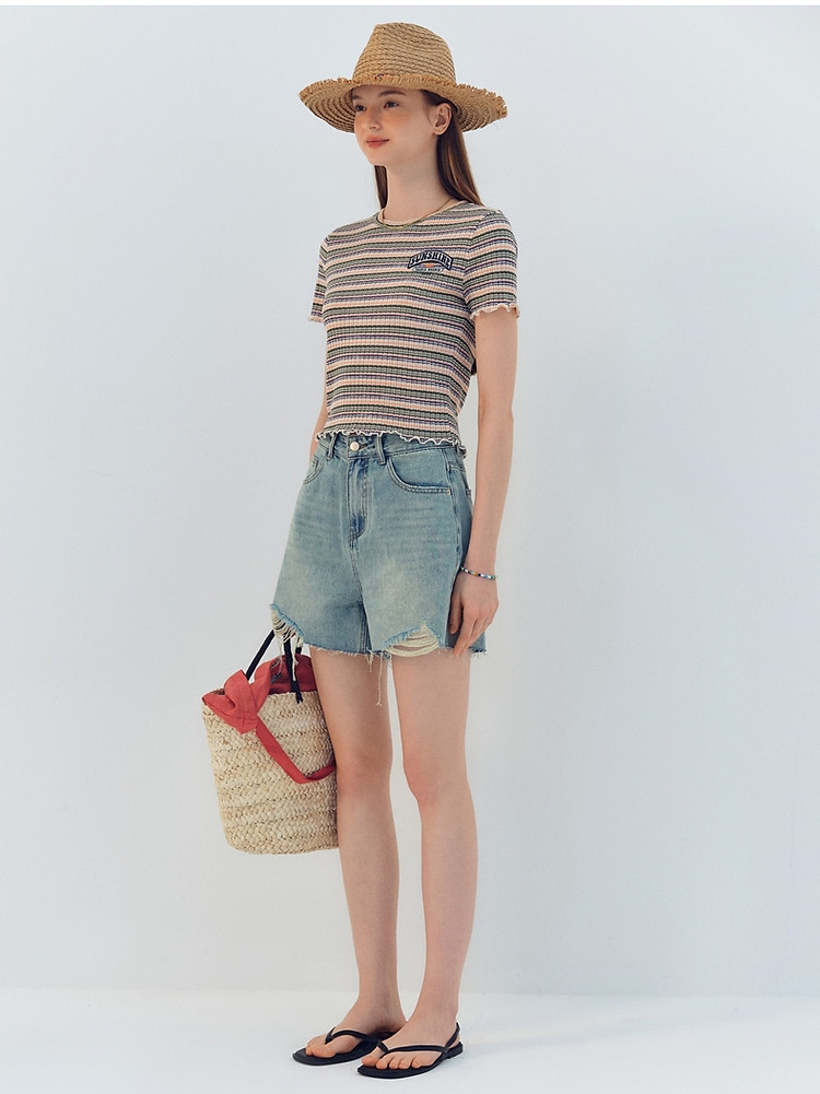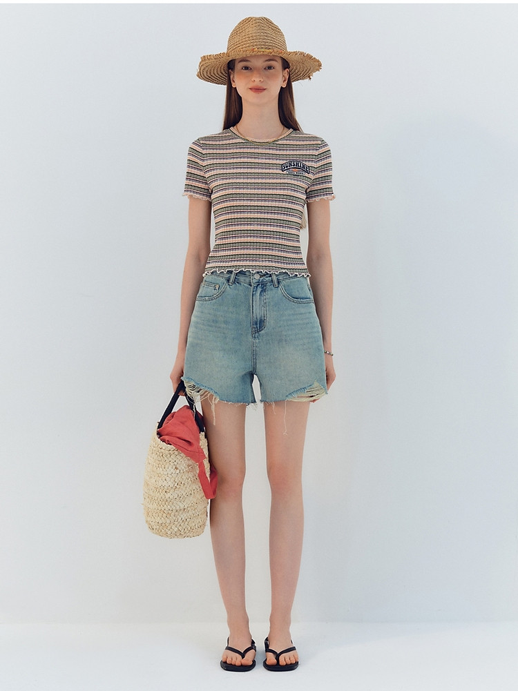 商品名称:小熊夏季简约撞色条纹短款短袖T恤基础款复古时髦女 368641