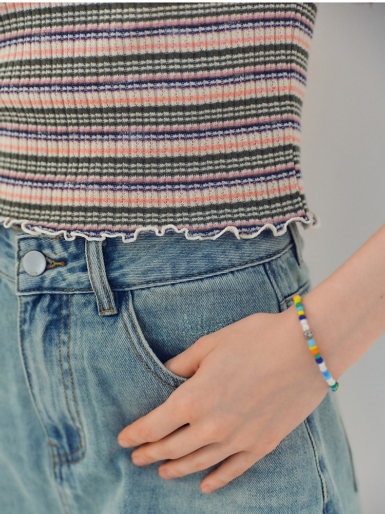小熊夏季简约撞色条纹短款短袖T恤基础款复古时髦女 368641