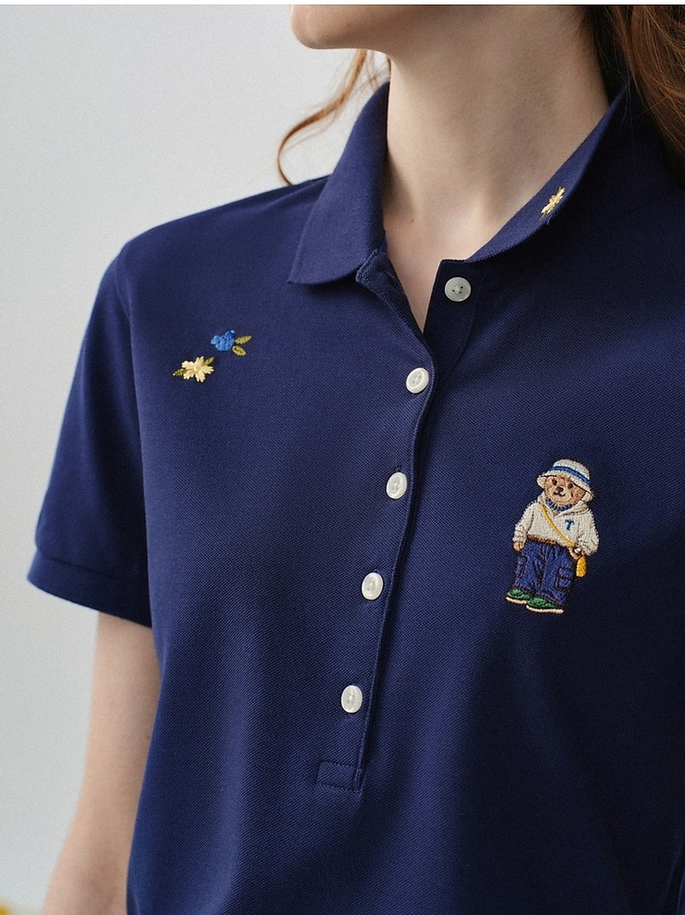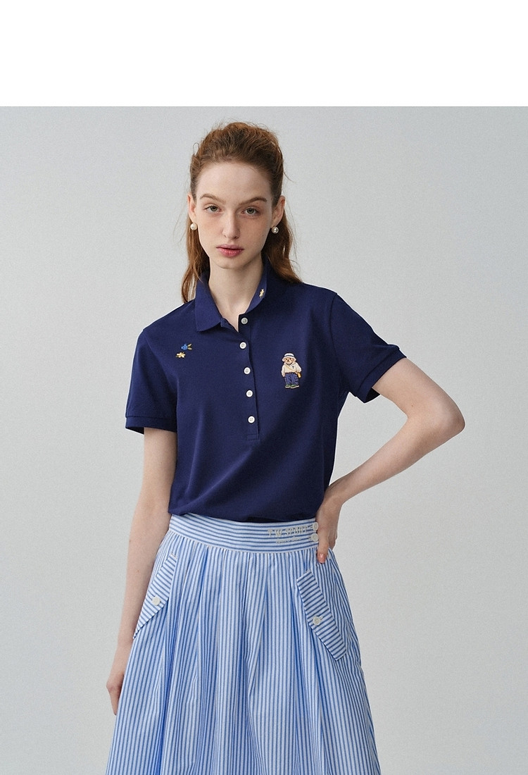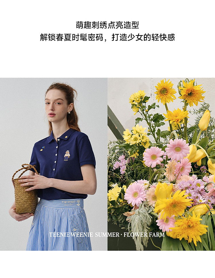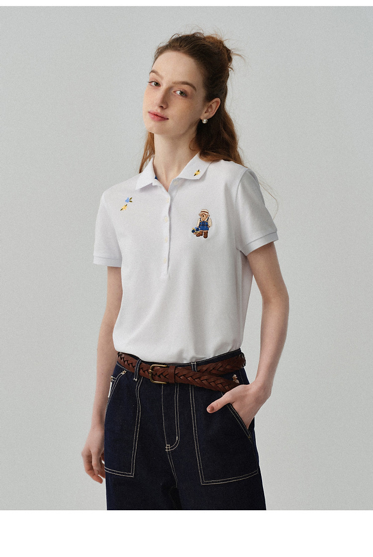 POLO衫女夏季时尚简约小熊刺绣短袖T恤上衣女 761281