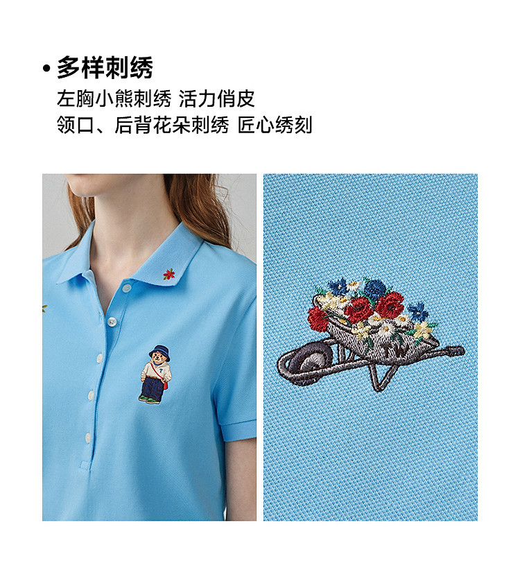 商品名称:POLO衫女夏季时尚简约小熊刺绣短袖T恤上衣女 761281