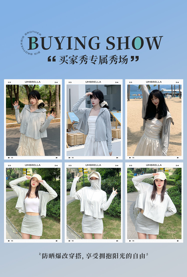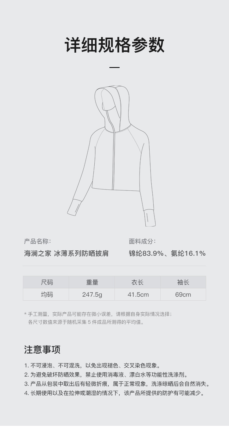 商品名称:防晒衣披肩宽松防紫外线透气连帽凉感披肩衫开车服骑电动车 319894
