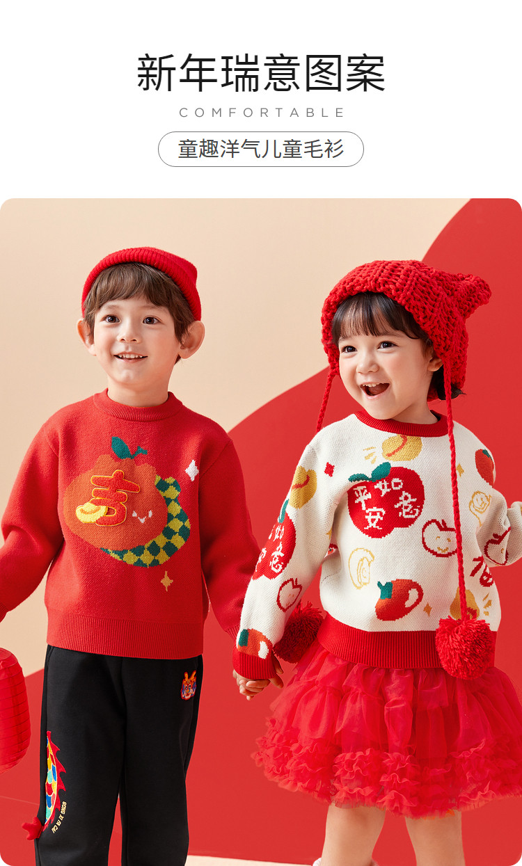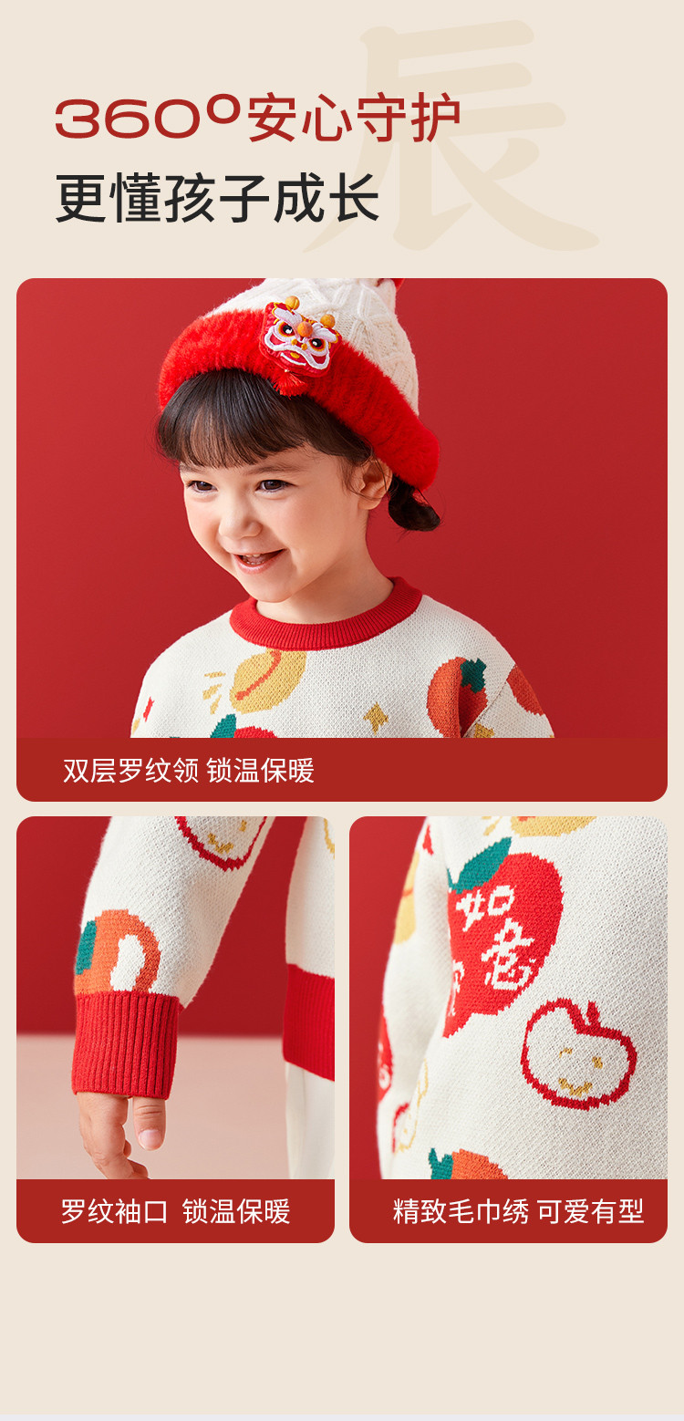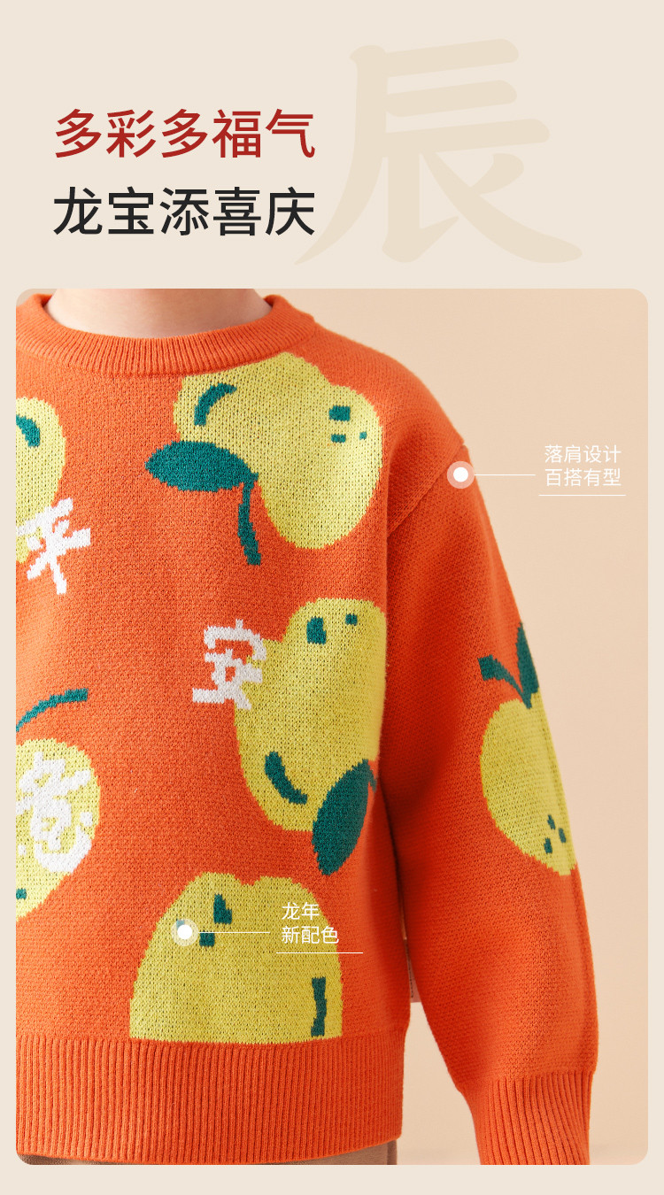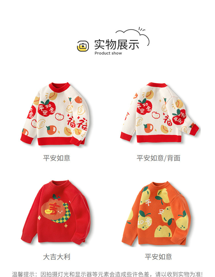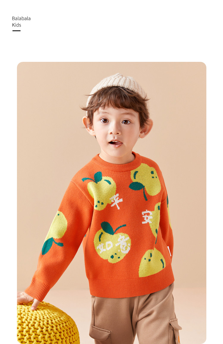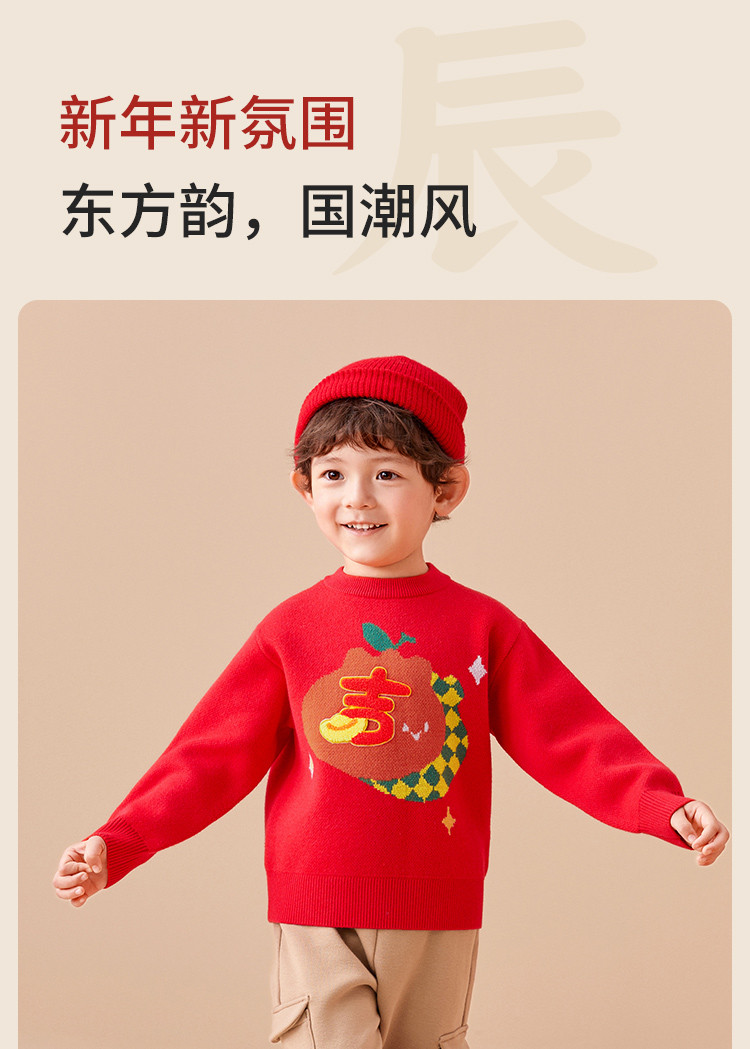 商品名称:国风儿童毛衣男童春秋装女童宝宝套头针织衫柔软童装 350917