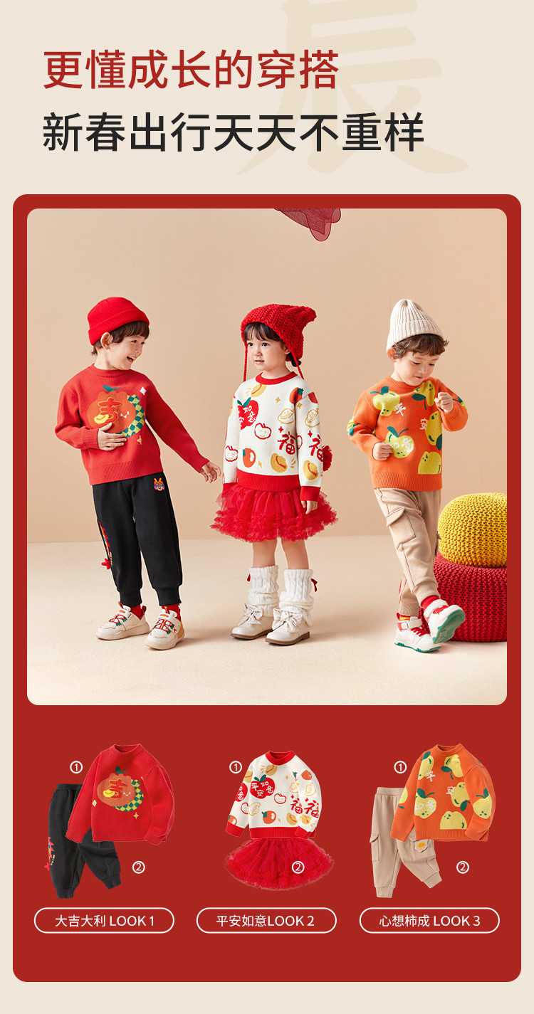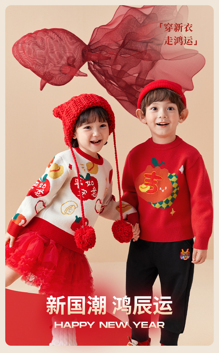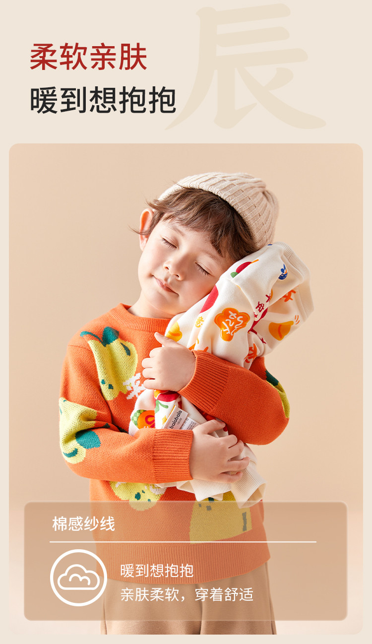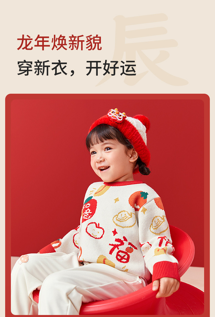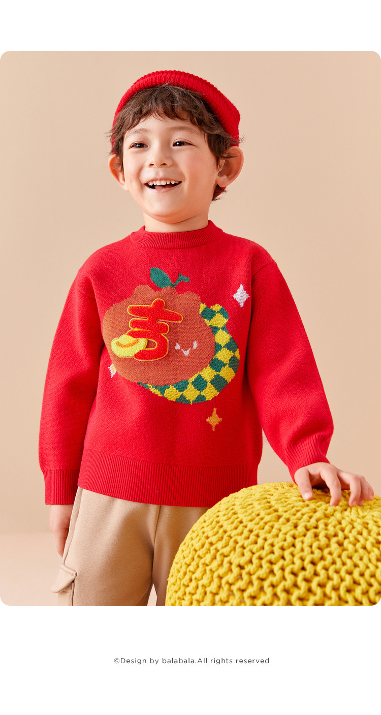 商品名称:国风儿童毛衣男童春秋装女童宝宝套头针织衫柔软童装 350917