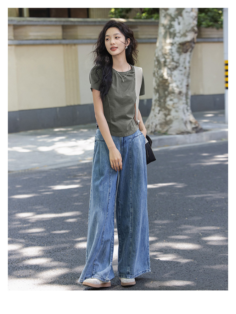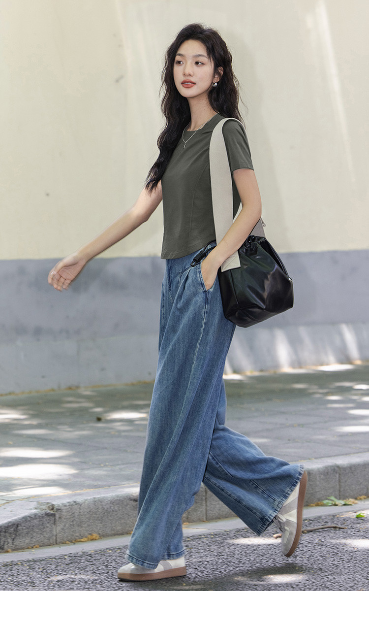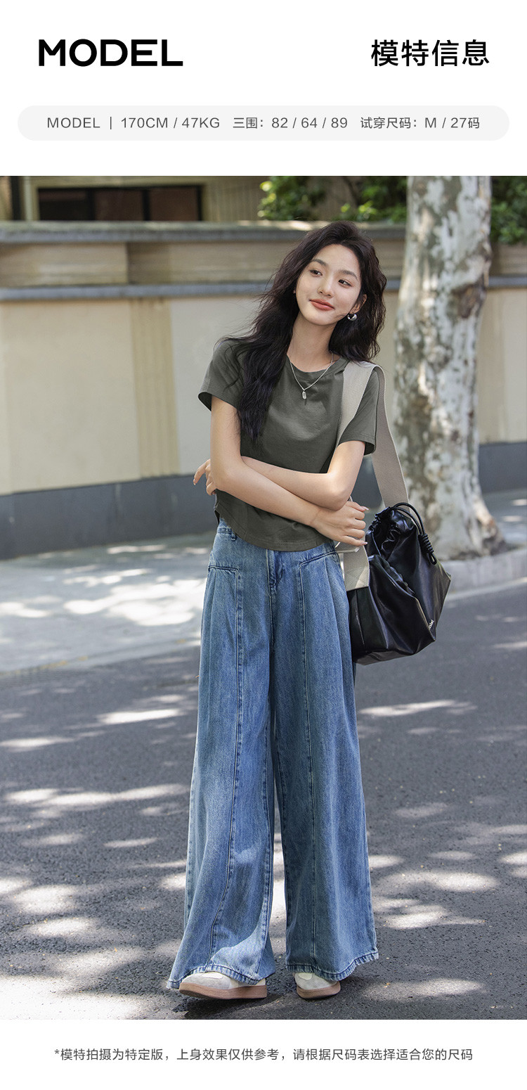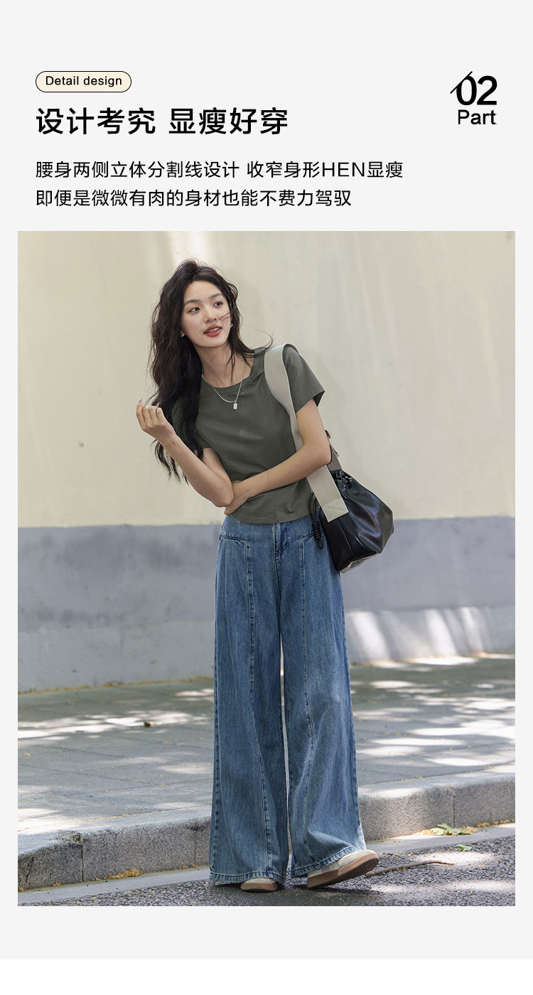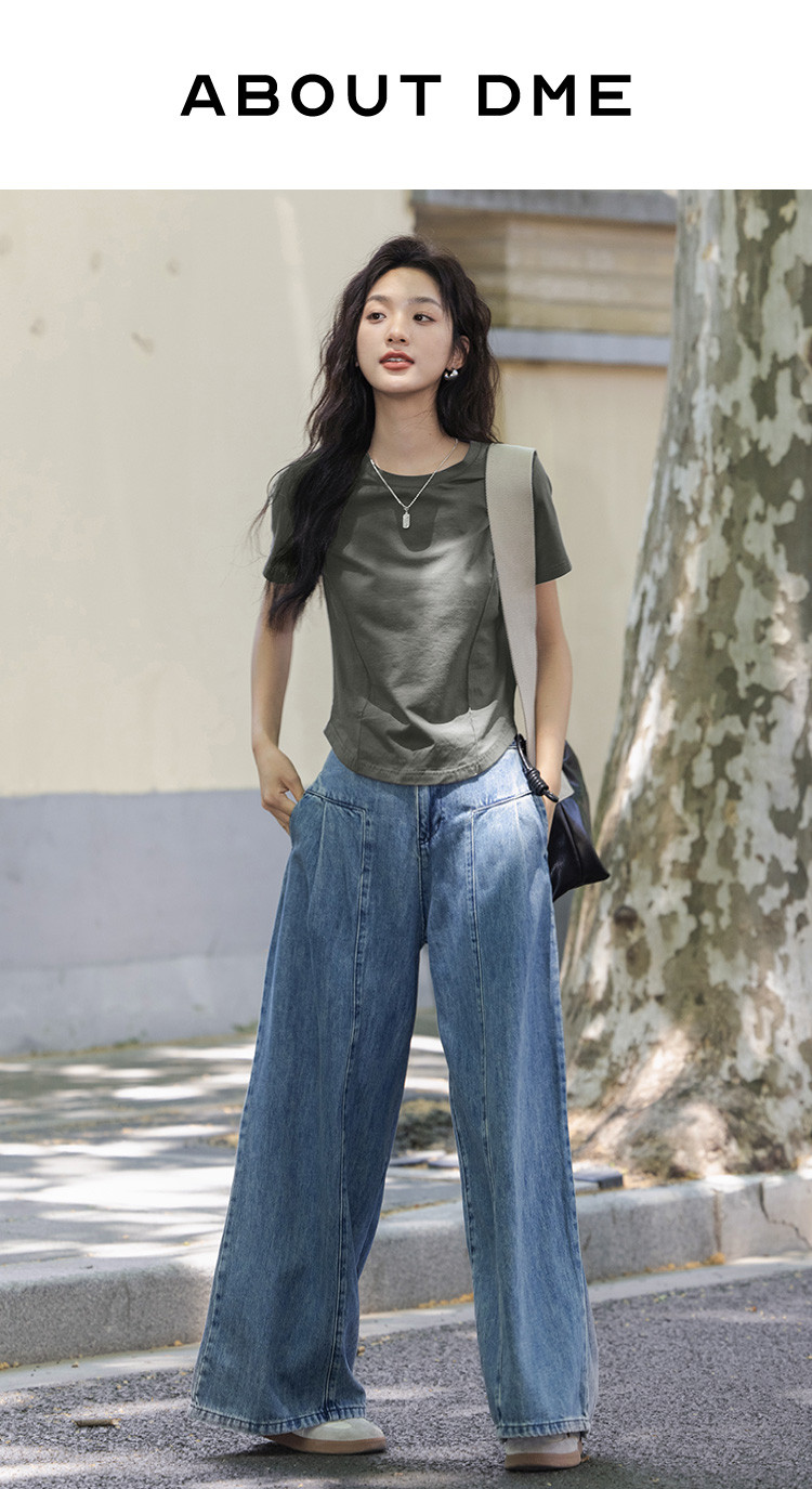 【炭灰正肩短袖】夏圆领舒适感立体压线装饰短袖T恤女 693762