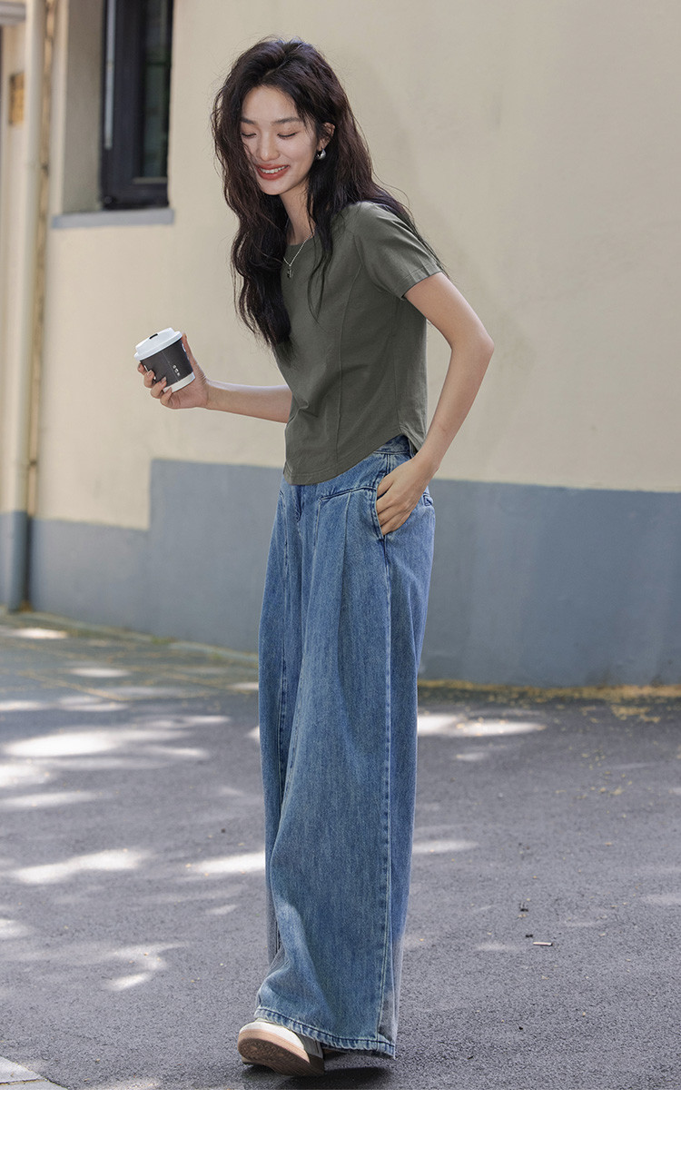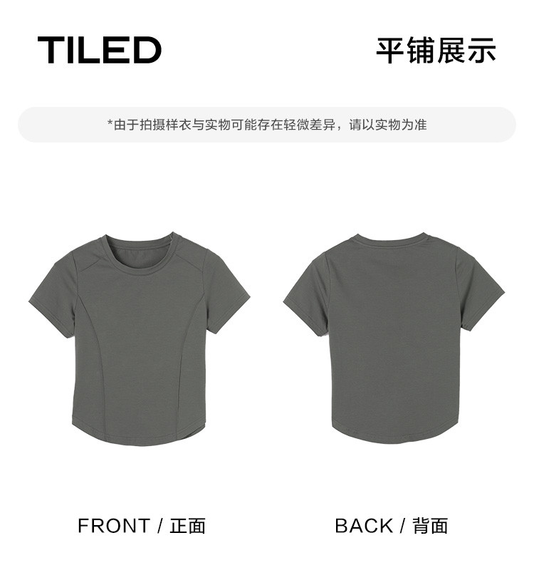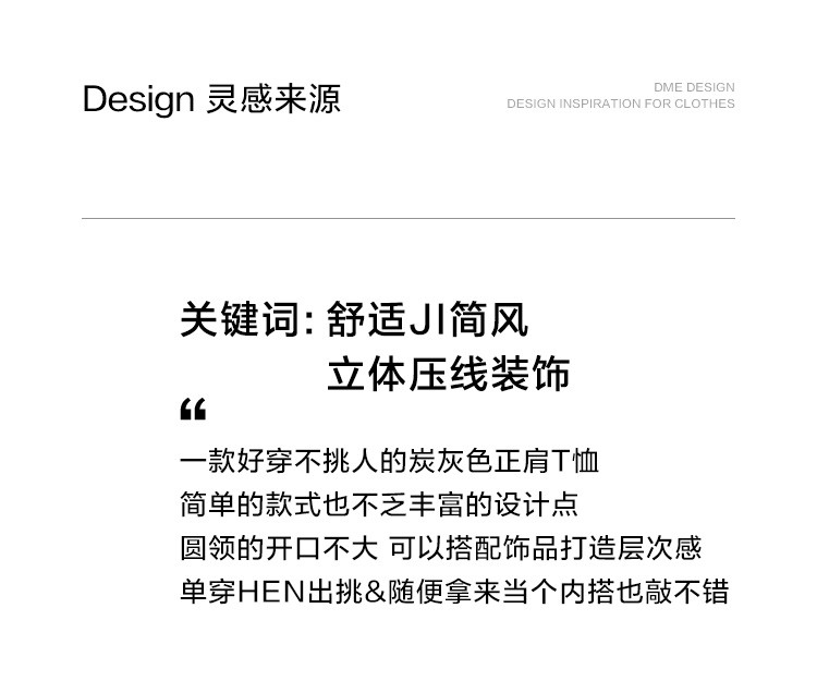 商品名称:【炭灰正肩短袖】夏圆领舒适感立体压线装饰短袖T恤女 693762