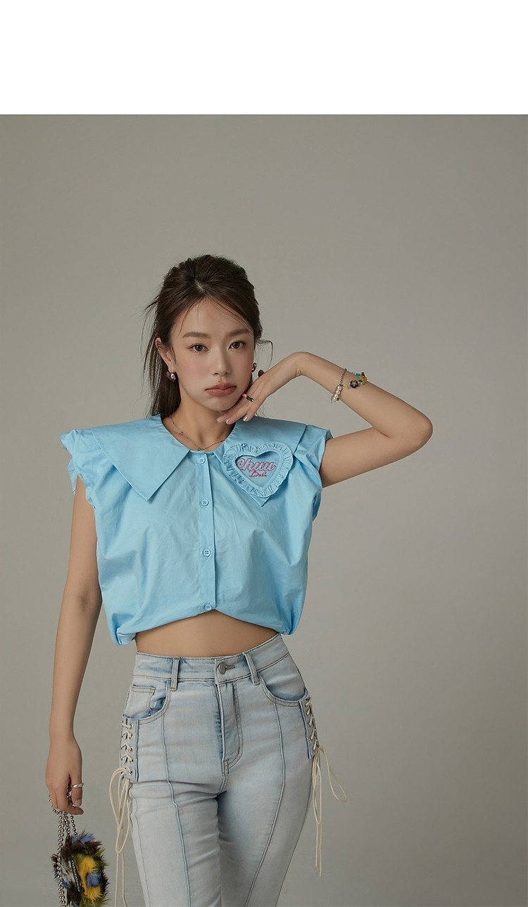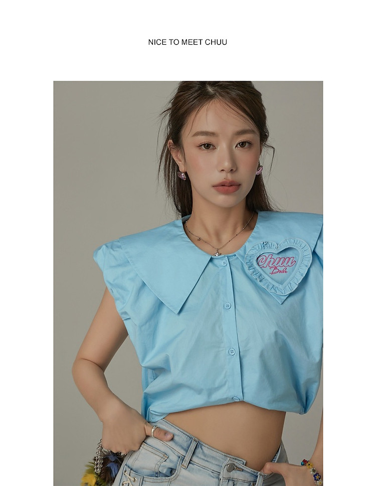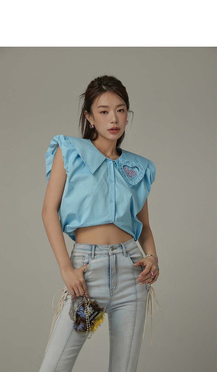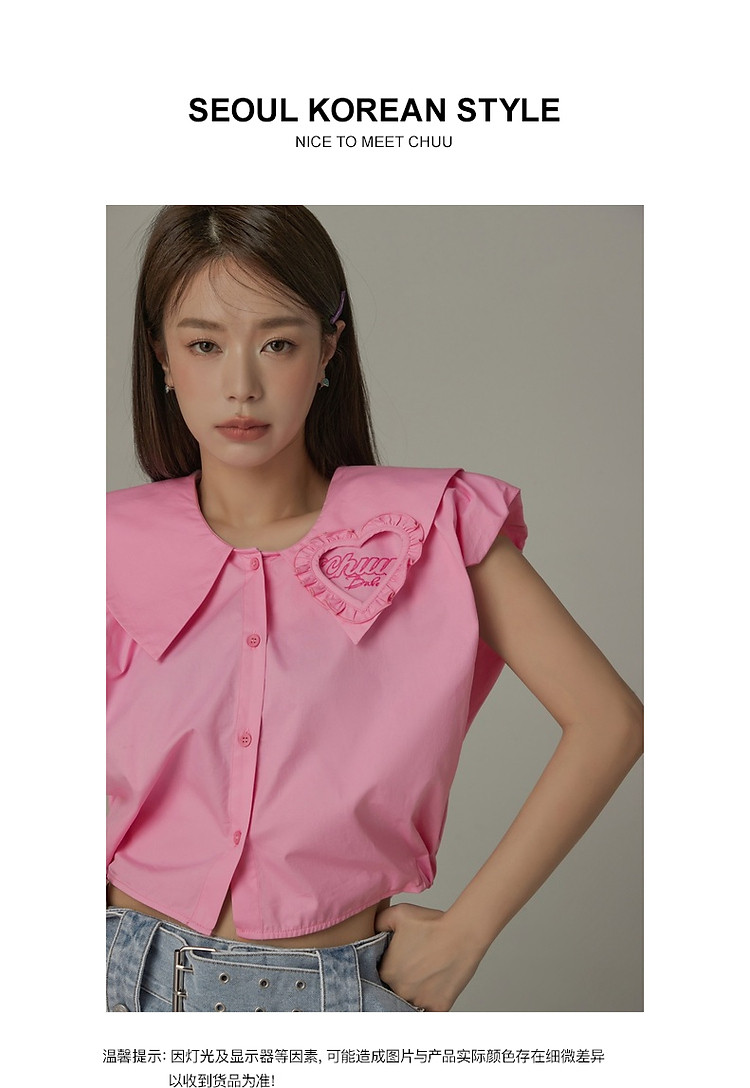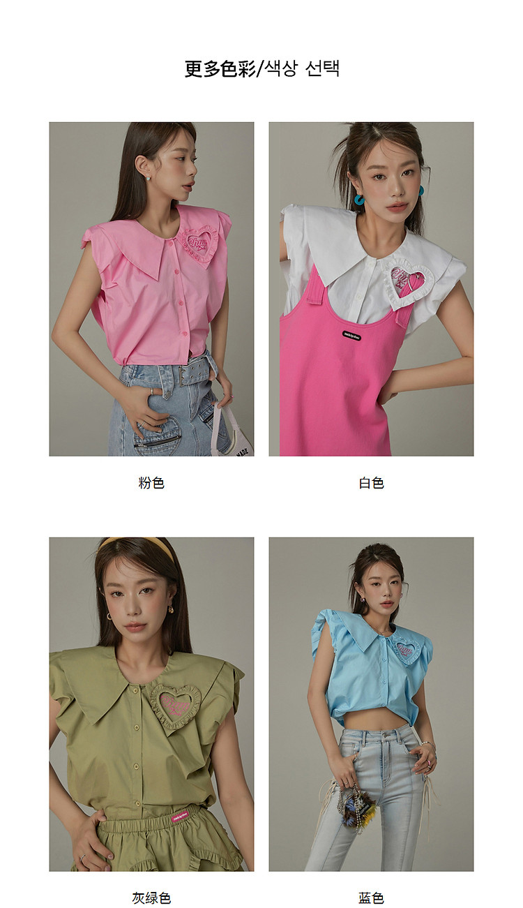 爱心镂空衬衫女夏设计感甜辣减龄洋气无袖短款上衣 589075