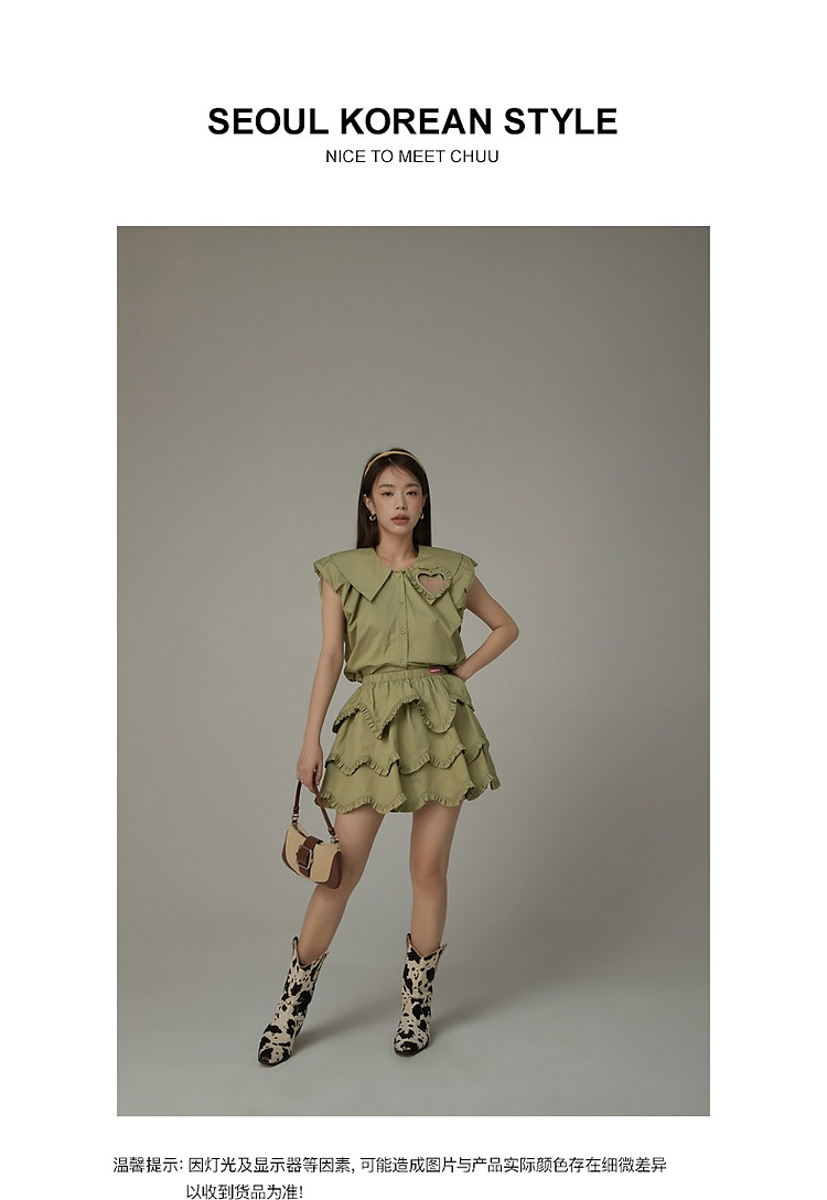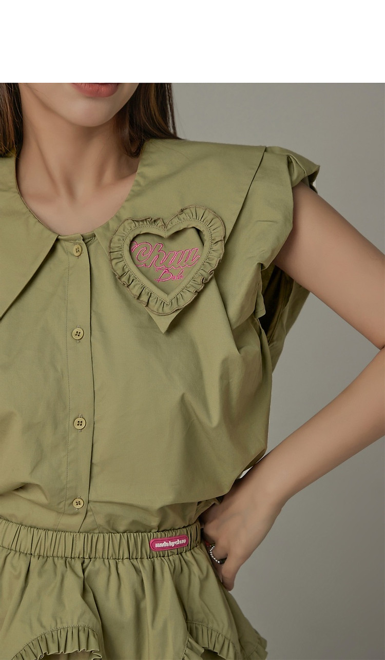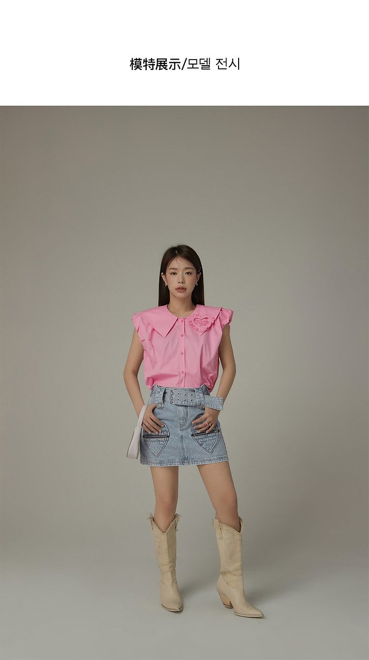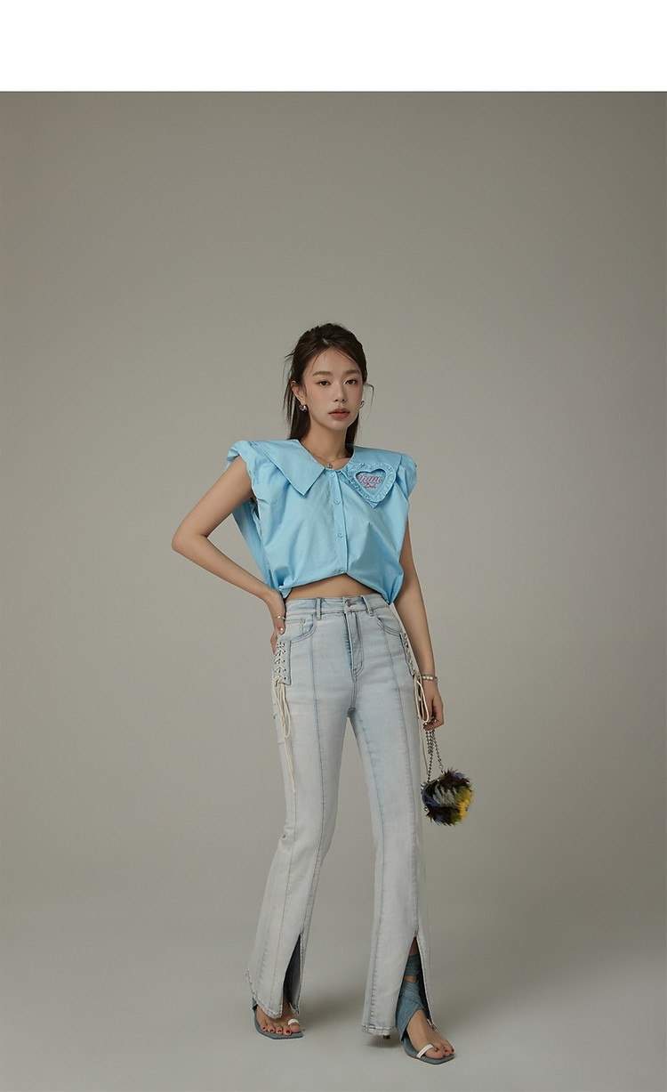 爱心镂空衬衫女夏设计感甜辣减龄洋气无袖短款上衣 589075