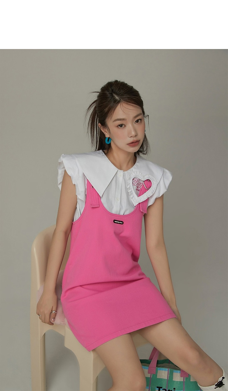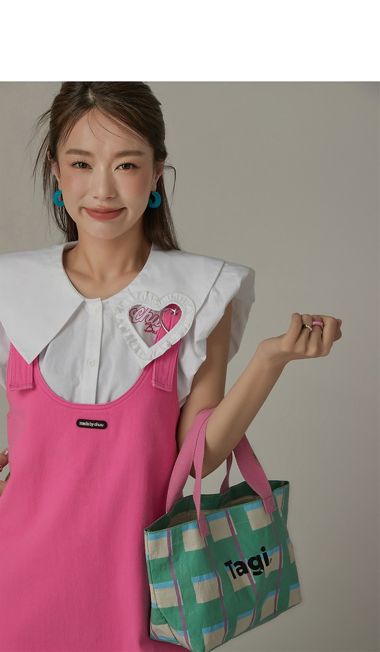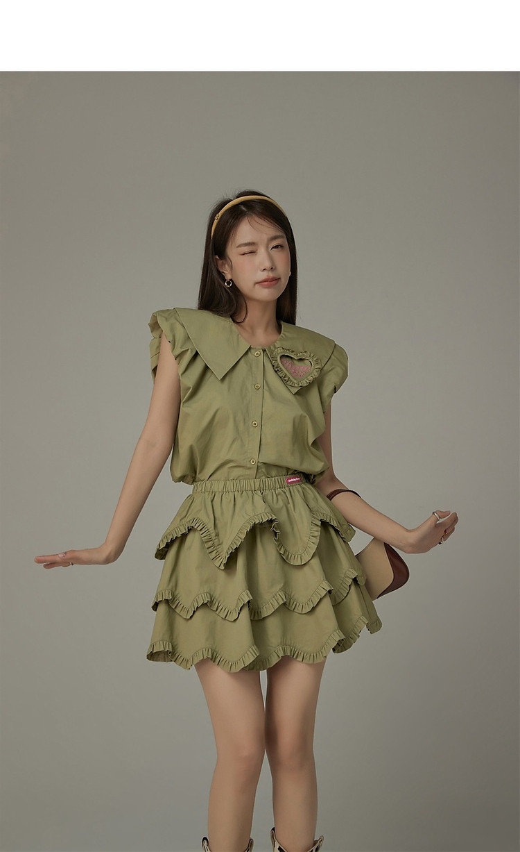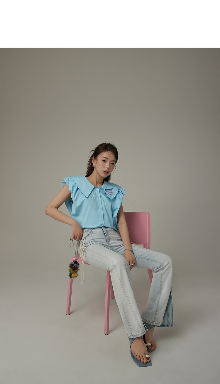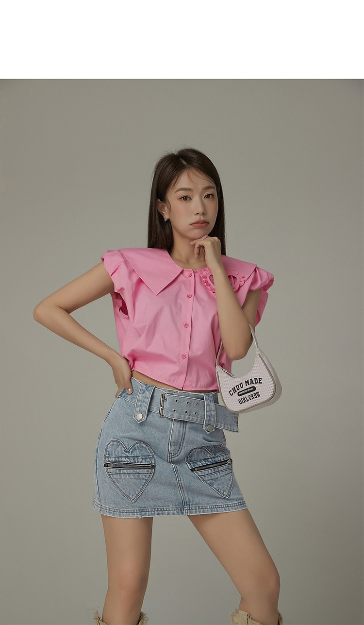 爱心镂空衬衫女夏设计感甜辣减龄洋气无袖短款上衣 589075