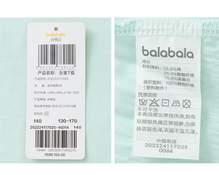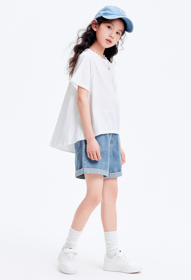 商品名称:巴拉巴拉儿童短袖女童t恤夏装大童拼接速干上衣百搭时尚甜美洋气 758661