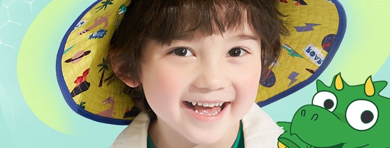 商品名称:KK树 欢趣乐园双面盆帽 活泼黄恐龙 M码 建议6个月-2岁
