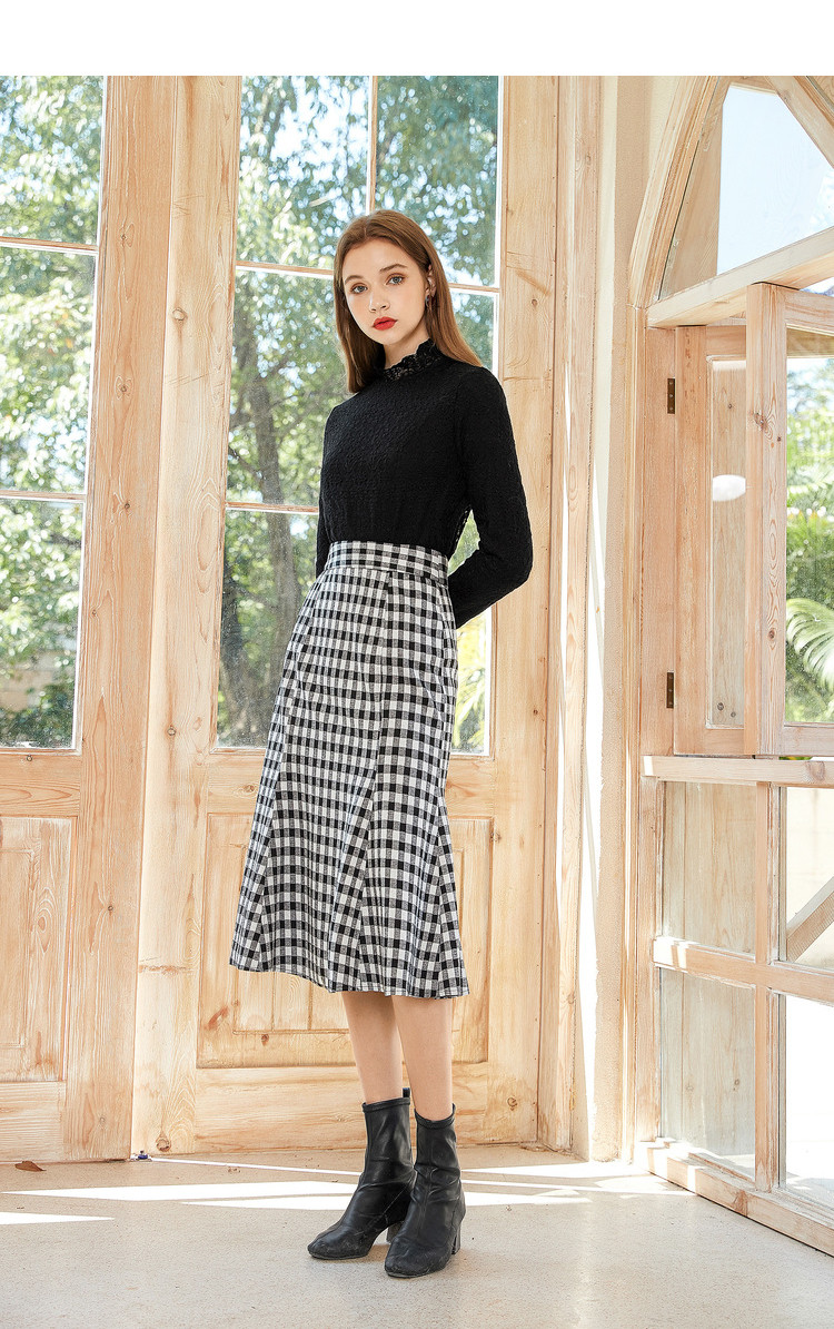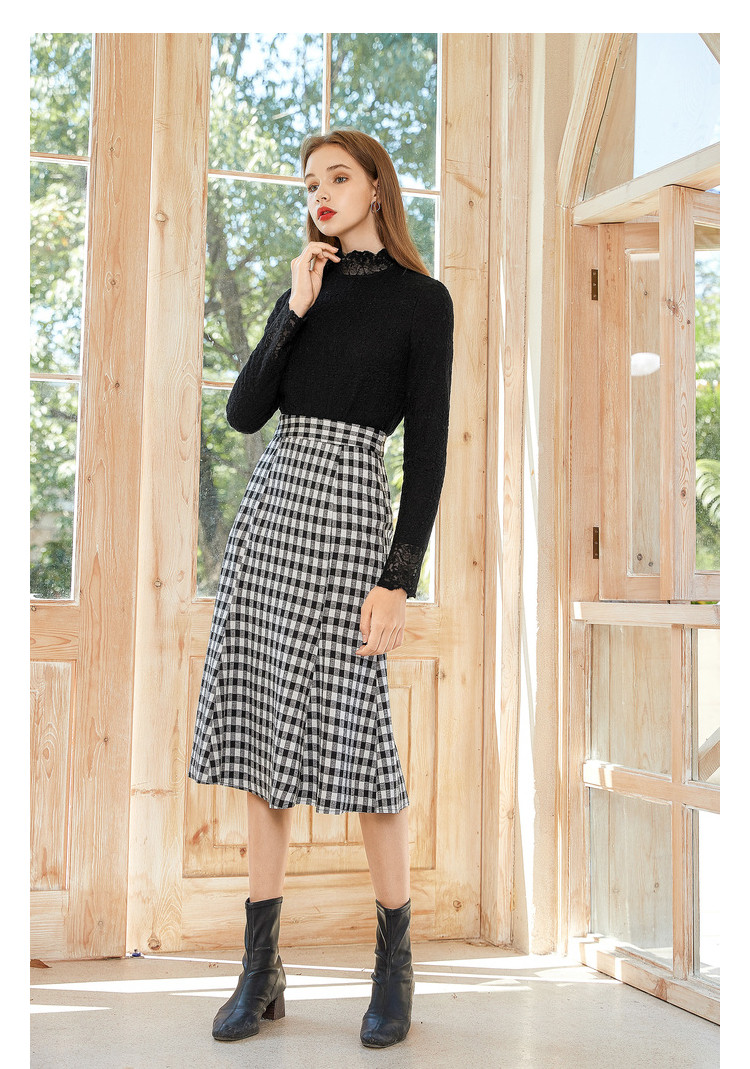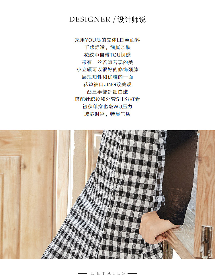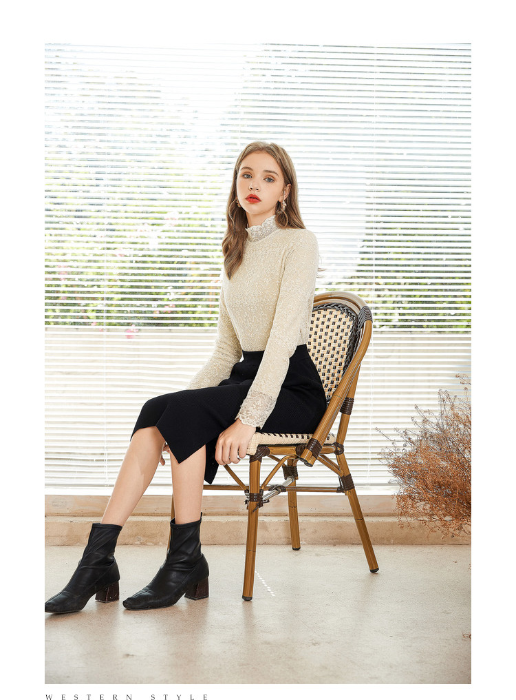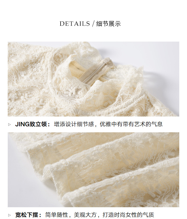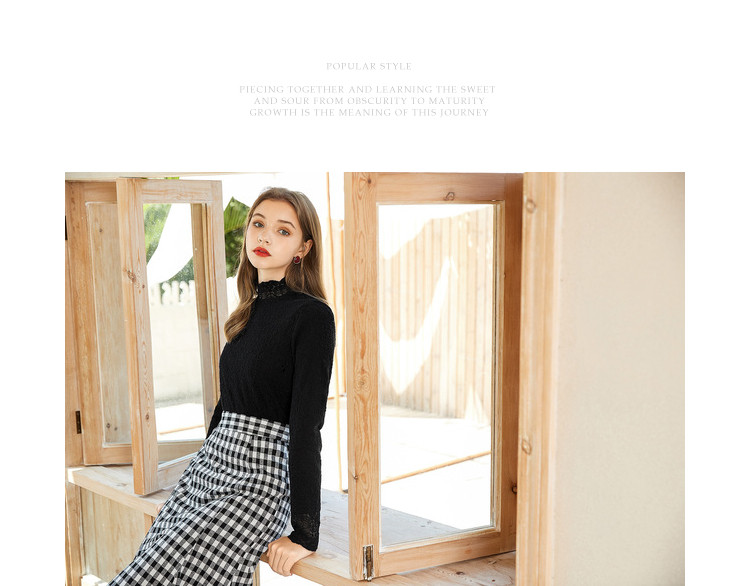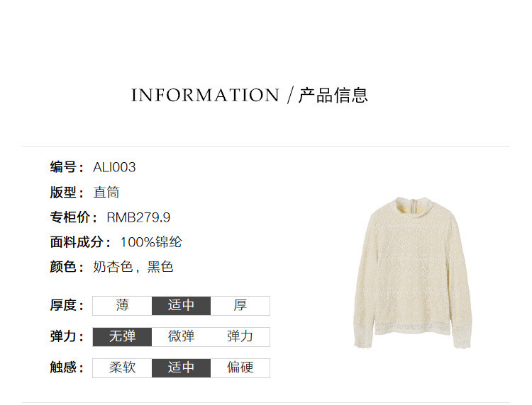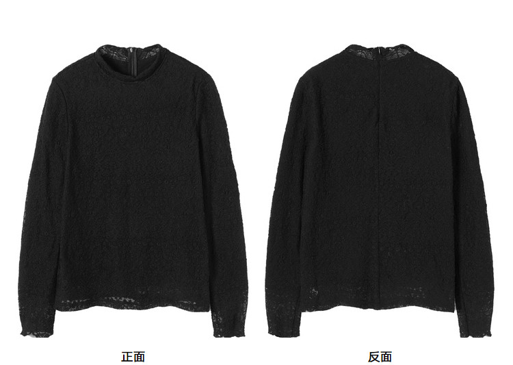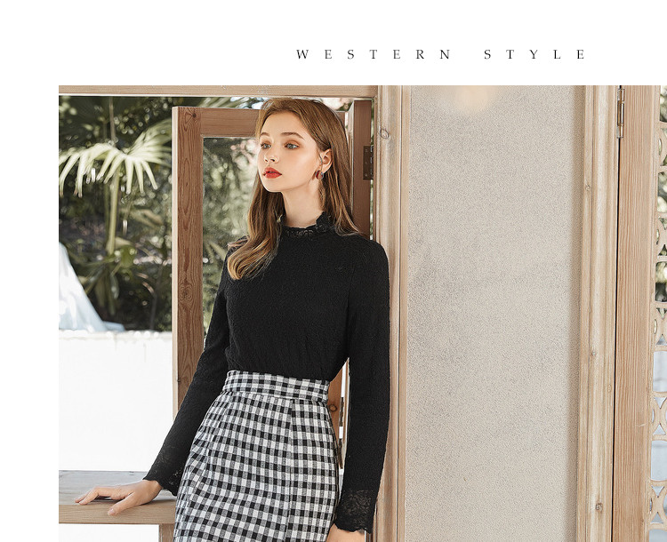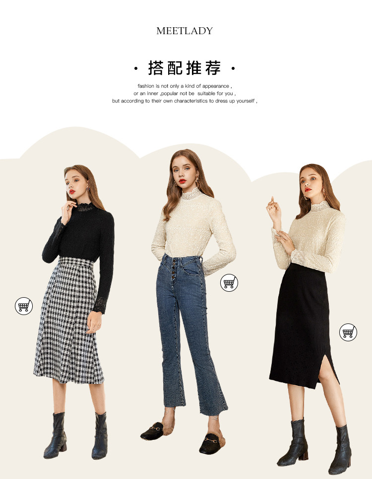商品名称:【女子图鉴】冬装半高领打底衫女蕾丝绣花网纱内搭上衣 002260