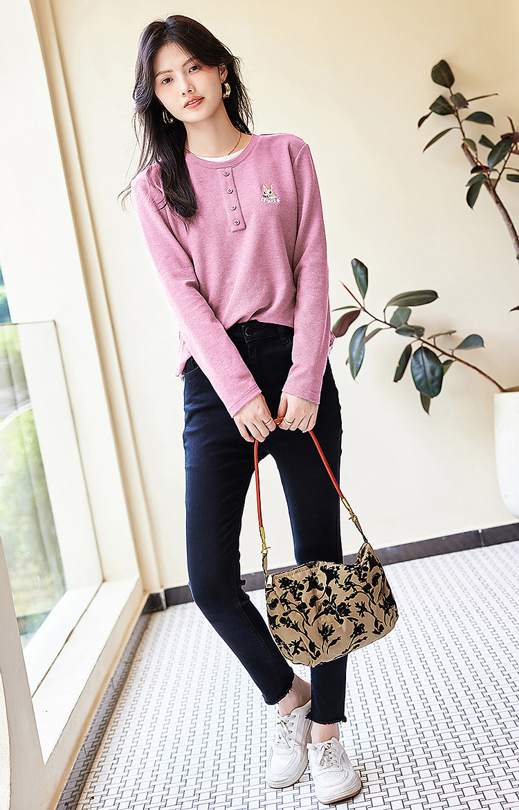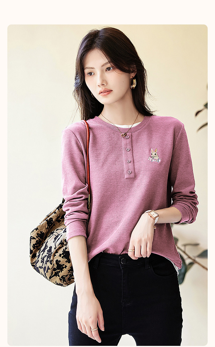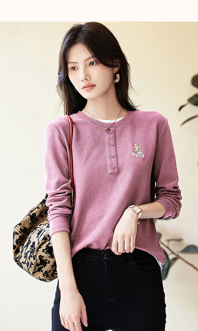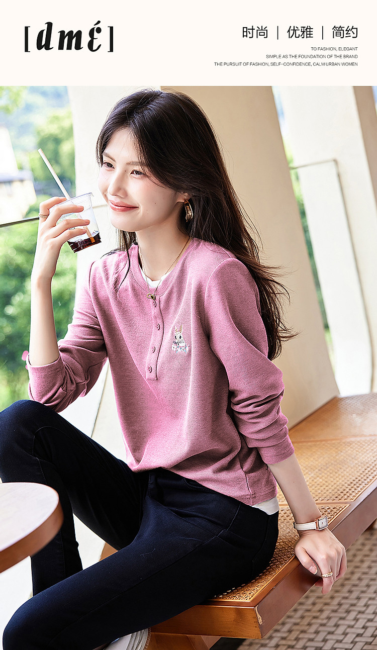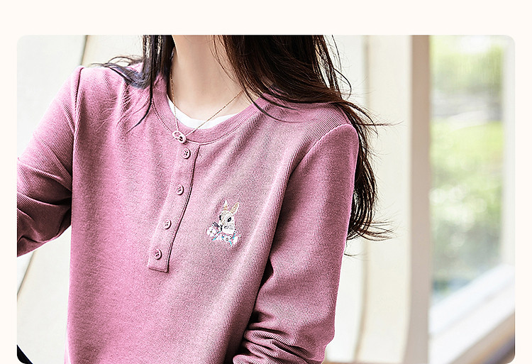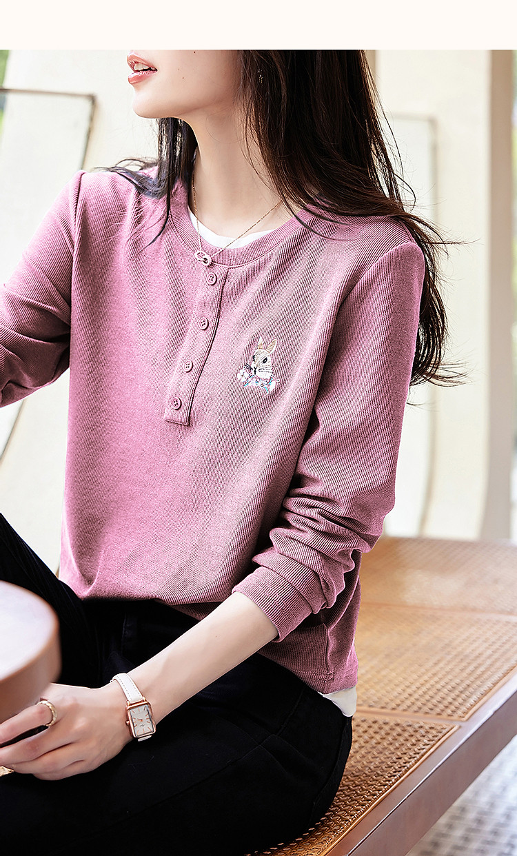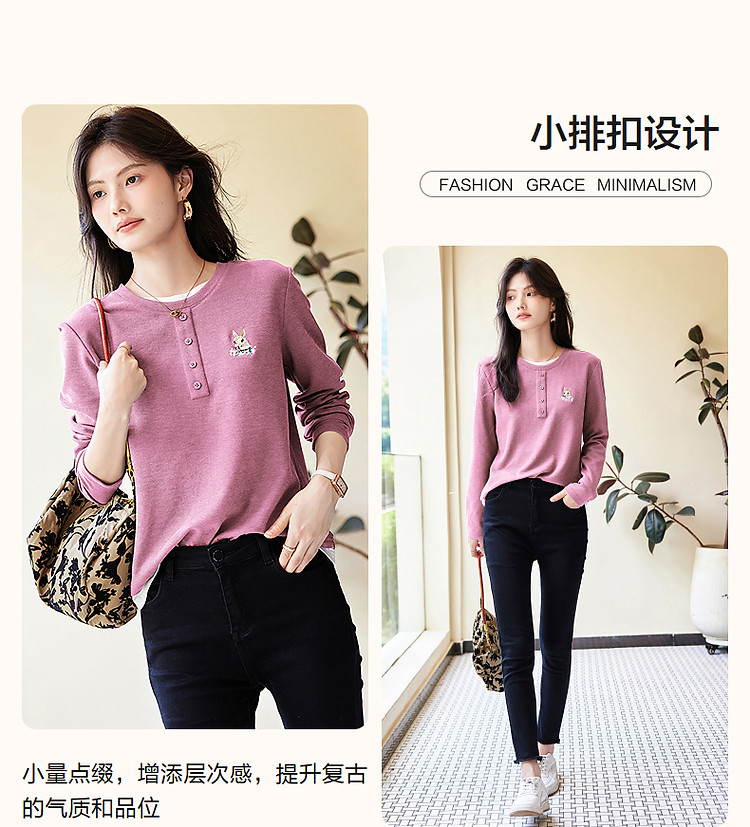 商品名称:【兔子拼色假两件女式t恤】春秋季通勤圆领长袖t恤女 535297