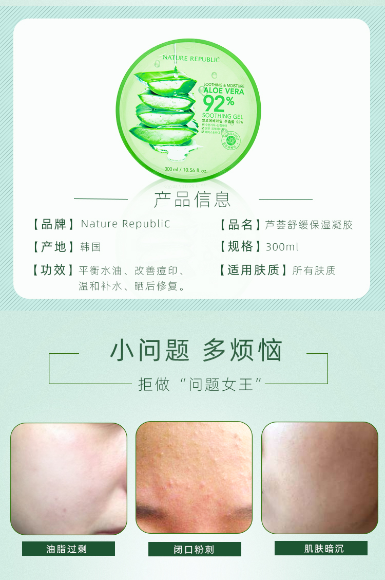 商品名称:自然乐园 芦荟舒缓保湿凝胶 300ml 晒后修护 保湿补水