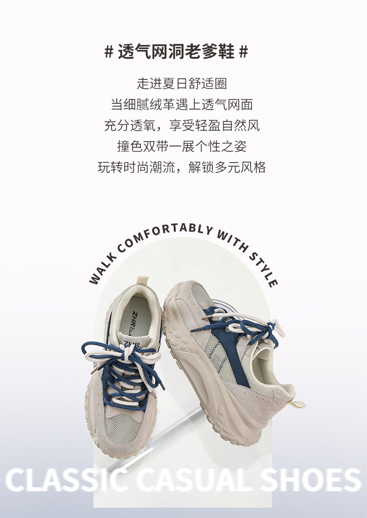 【复古撞色】网洞透气休闲鞋女运动鞋夏季增高厚底鞋老爹鞋子女鞋 977408