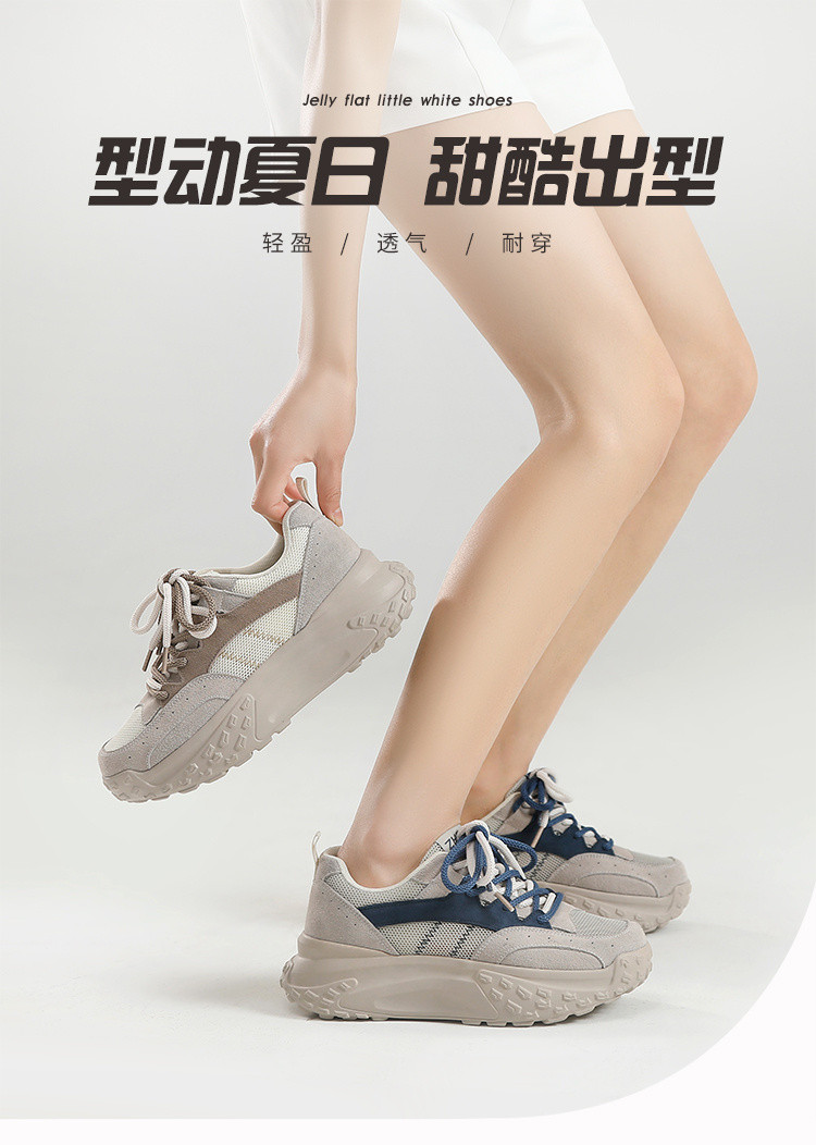 商品名称:【复古撞色】网洞透气休闲鞋女运动鞋夏季增高厚底鞋老爹鞋子女鞋 977408
