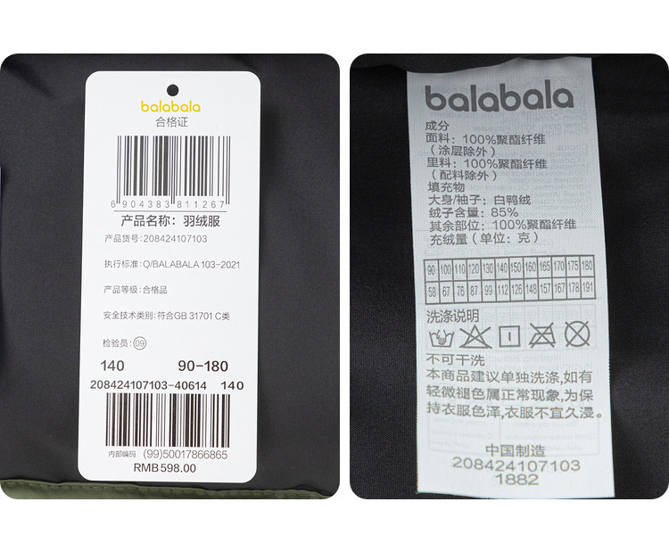 商品名称:亲子高品质撞色儿童羽绒服男童外套女童冬装宝宝加厚上衣 390021