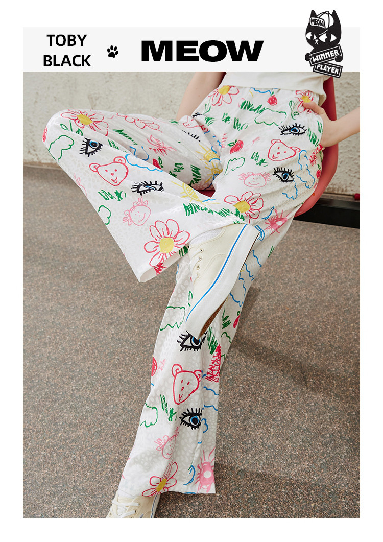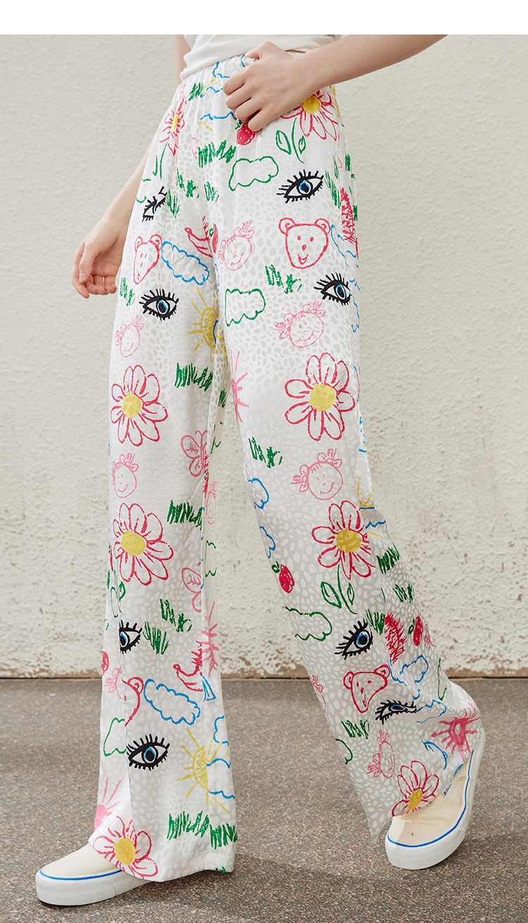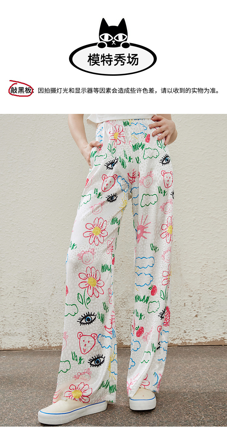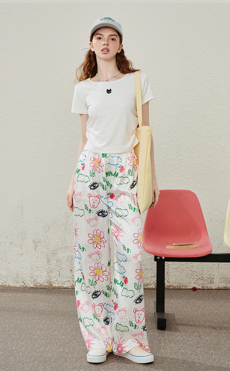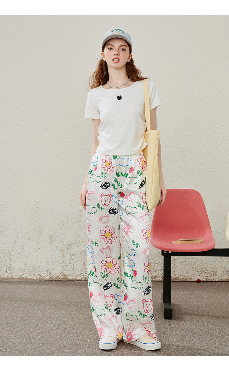 商品名称:卡通别致设计感百搭时尚宽松薄款阔腿裤夏季女式休闲裤 814237