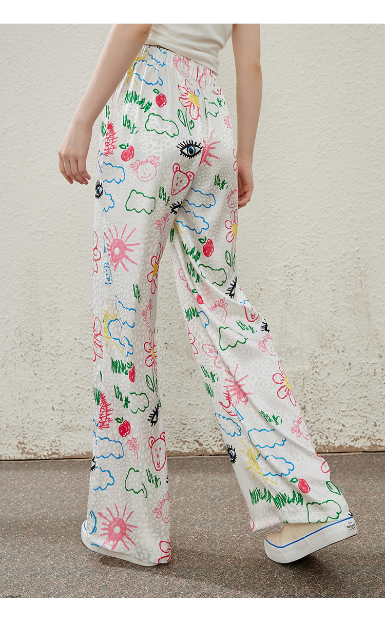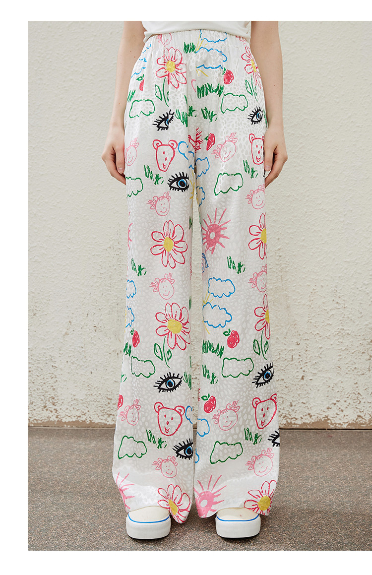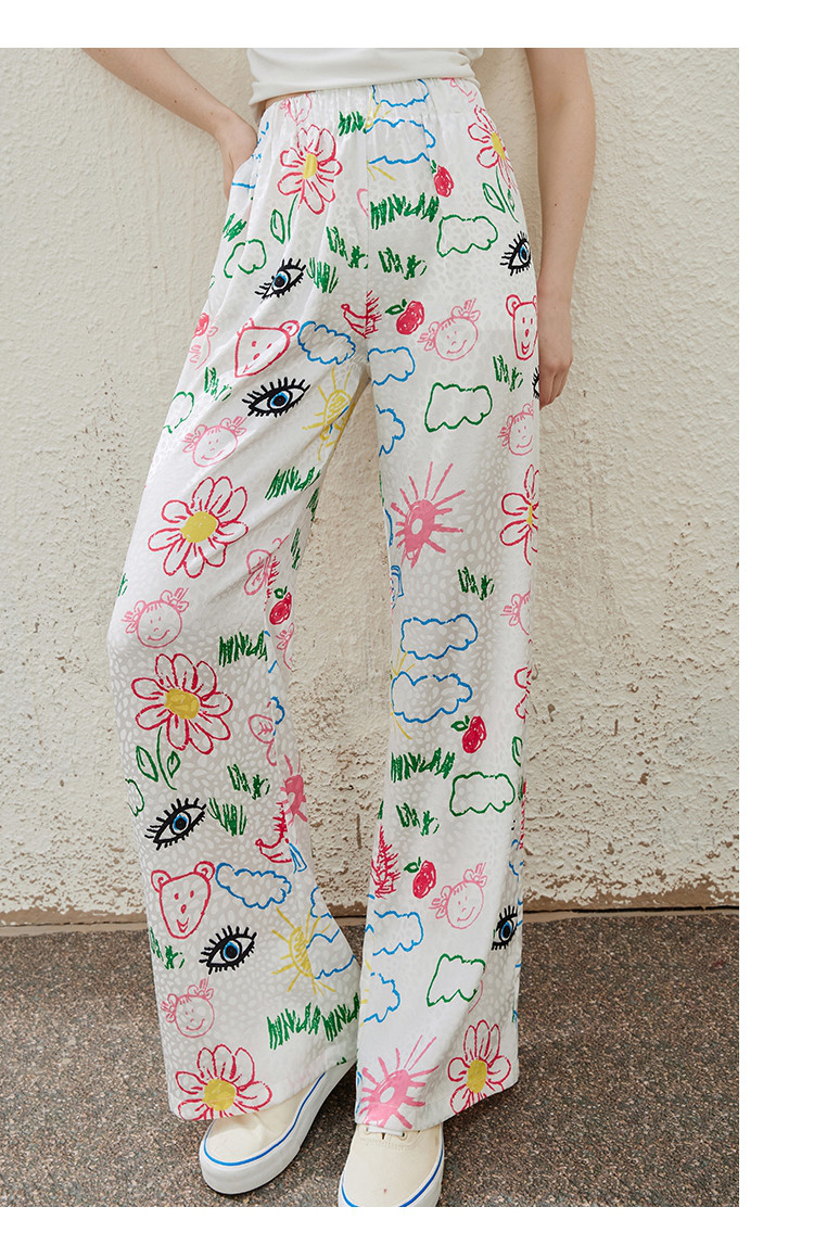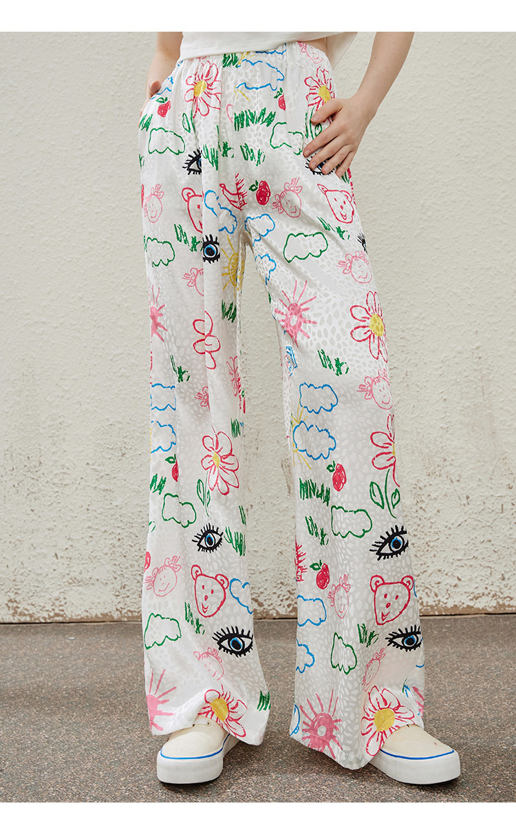 卡通别致设计感百搭时尚宽松薄款阔腿裤夏季女式休闲裤 814237