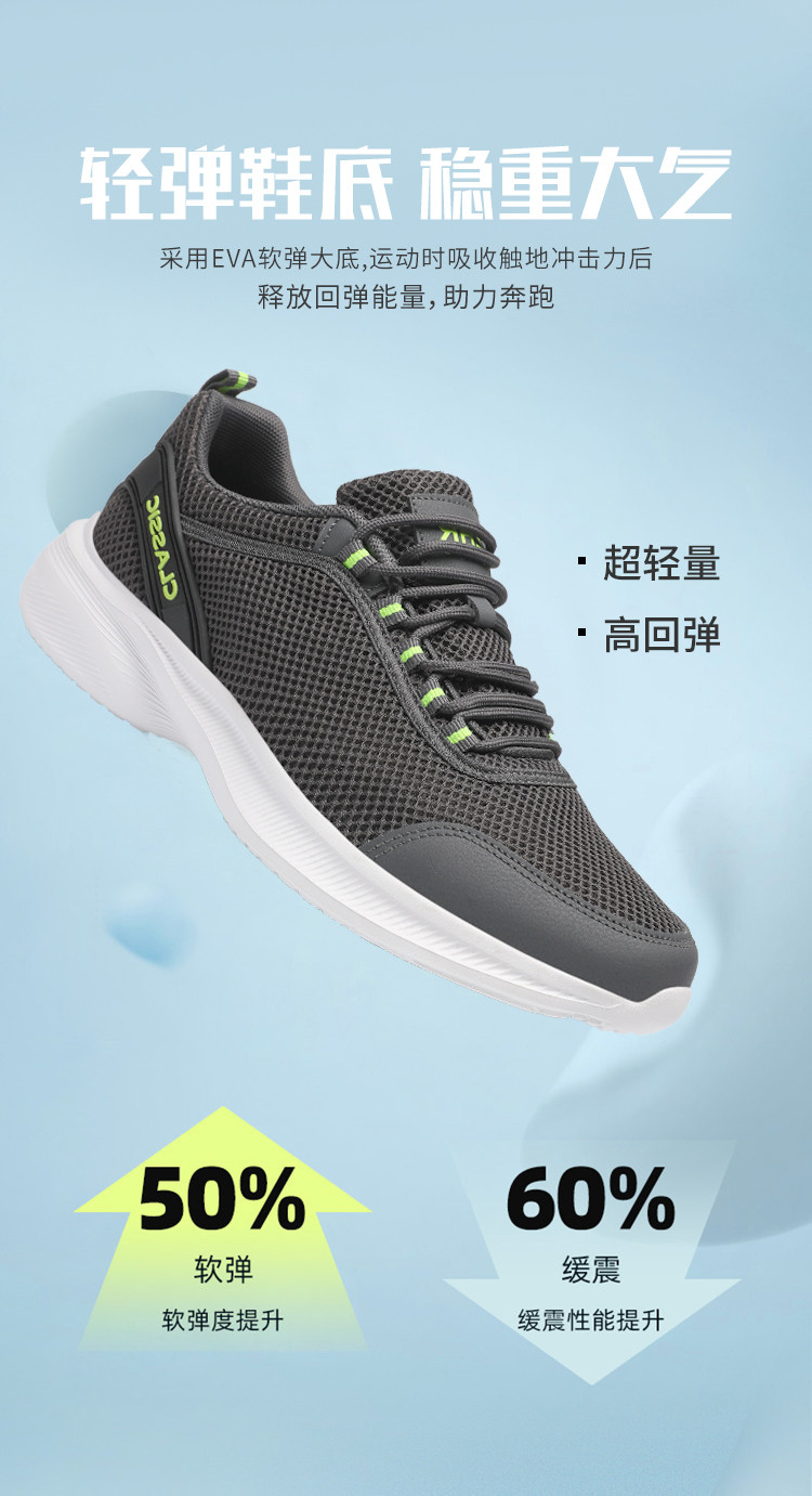 商品名称:男鞋【清爽健步】男士夏季轻便透气跑步鞋减震厚底休闲鞋网面鞋 573952