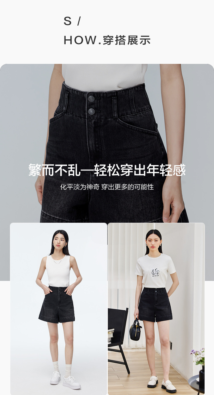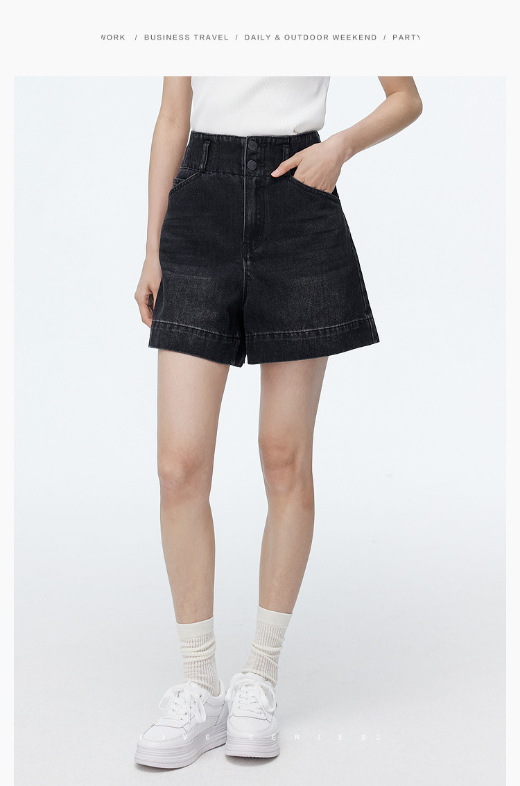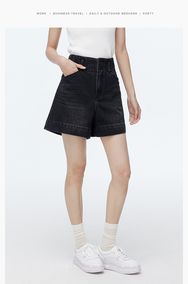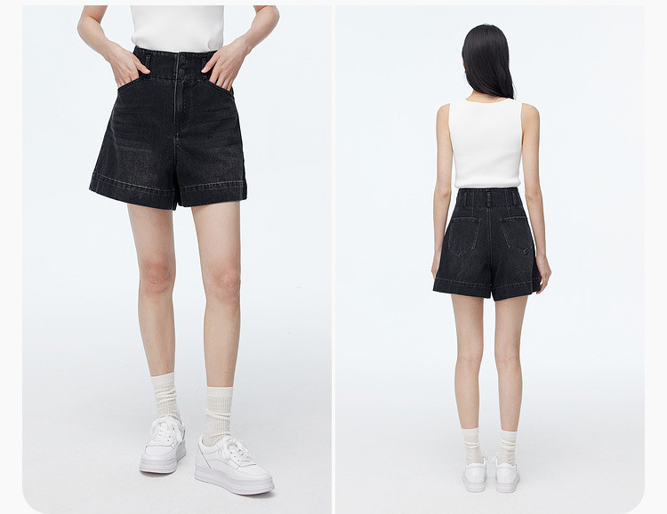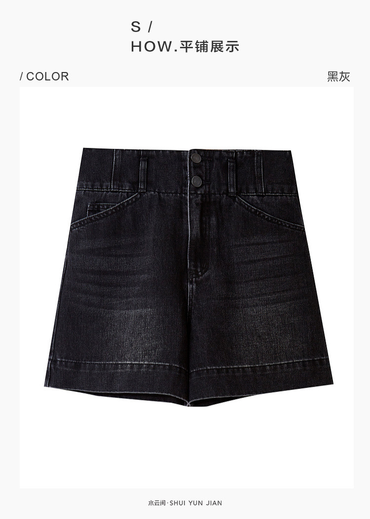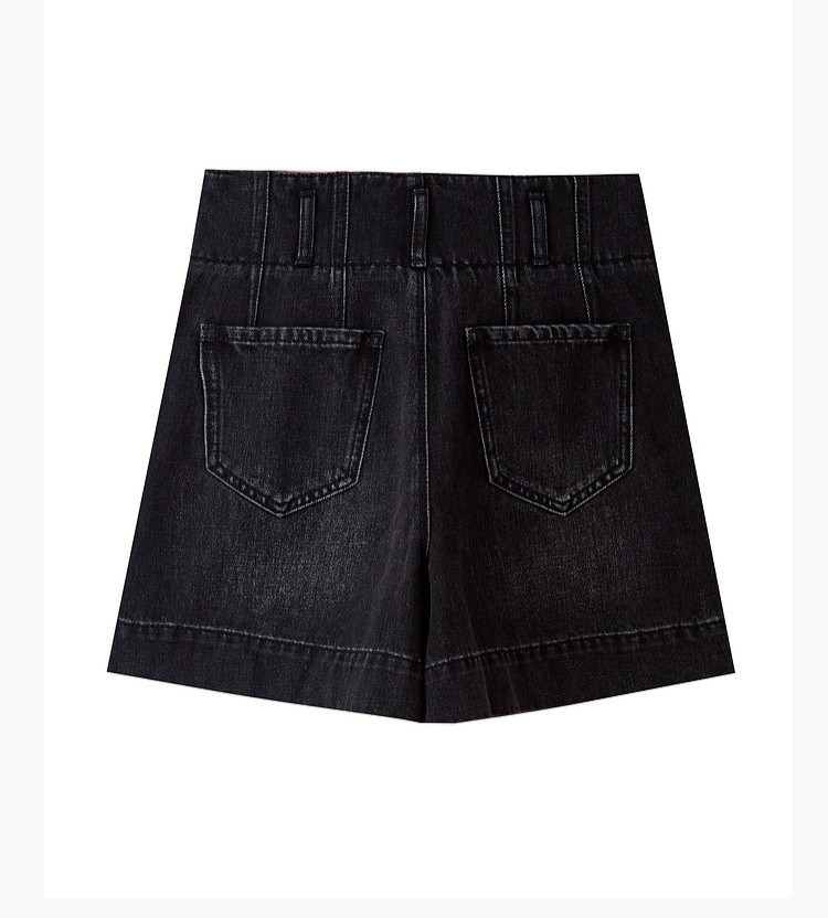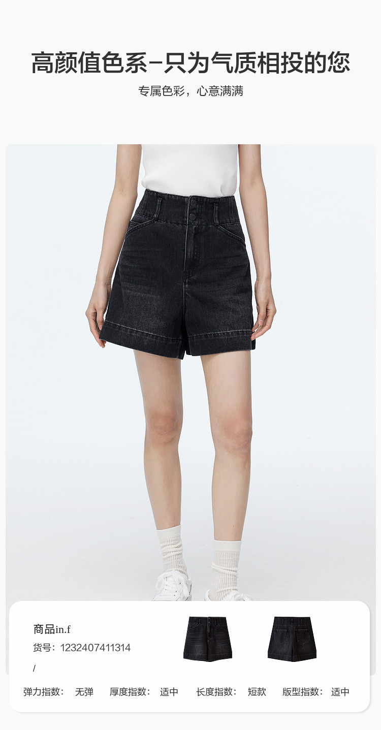 商品名称:时尚黑色牛仔裤短裤女夏季休闲小个子显瘦显高a字高腰阔腿裤子女 575555