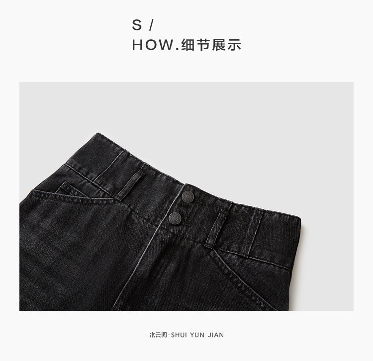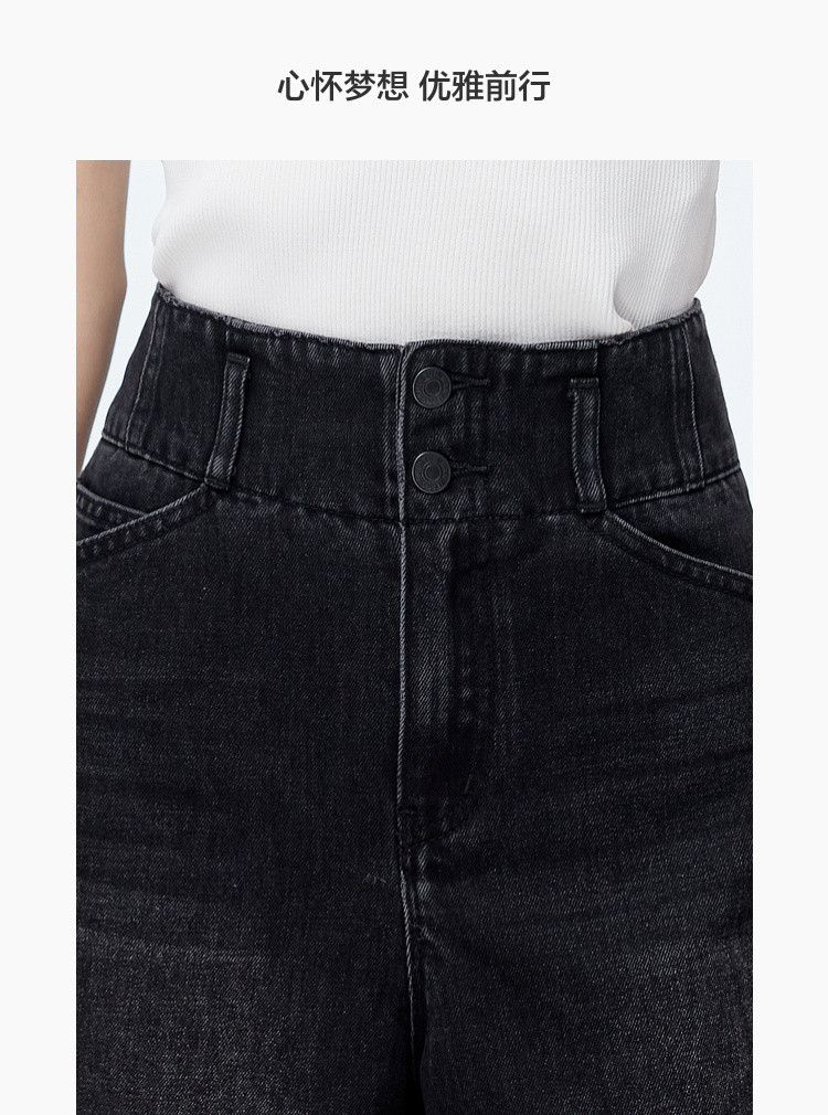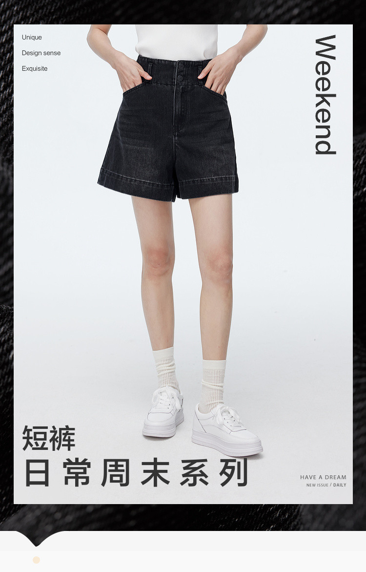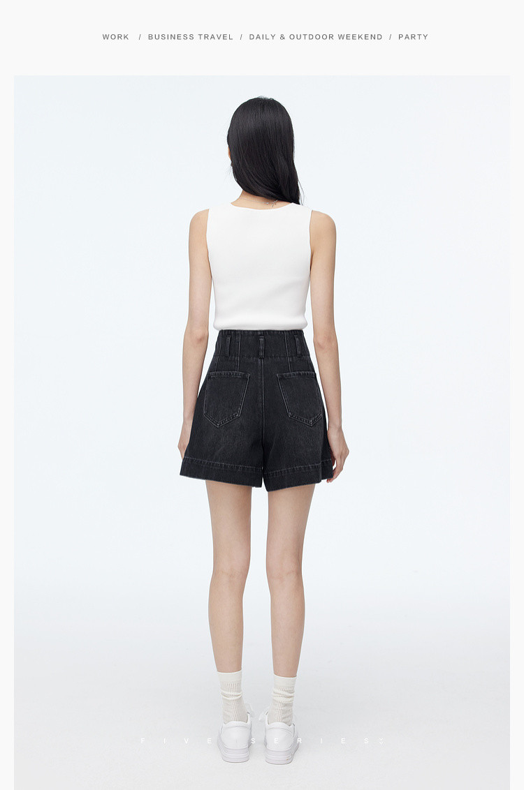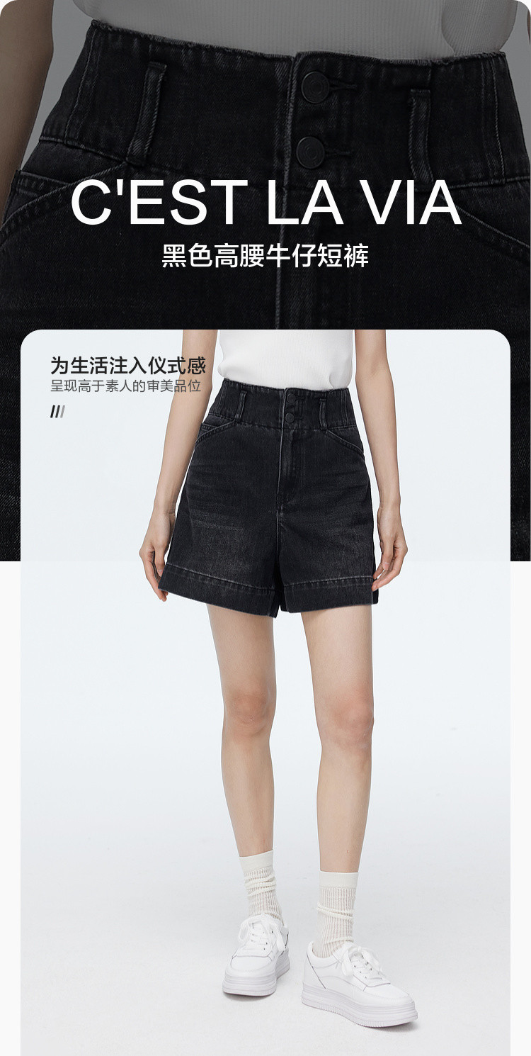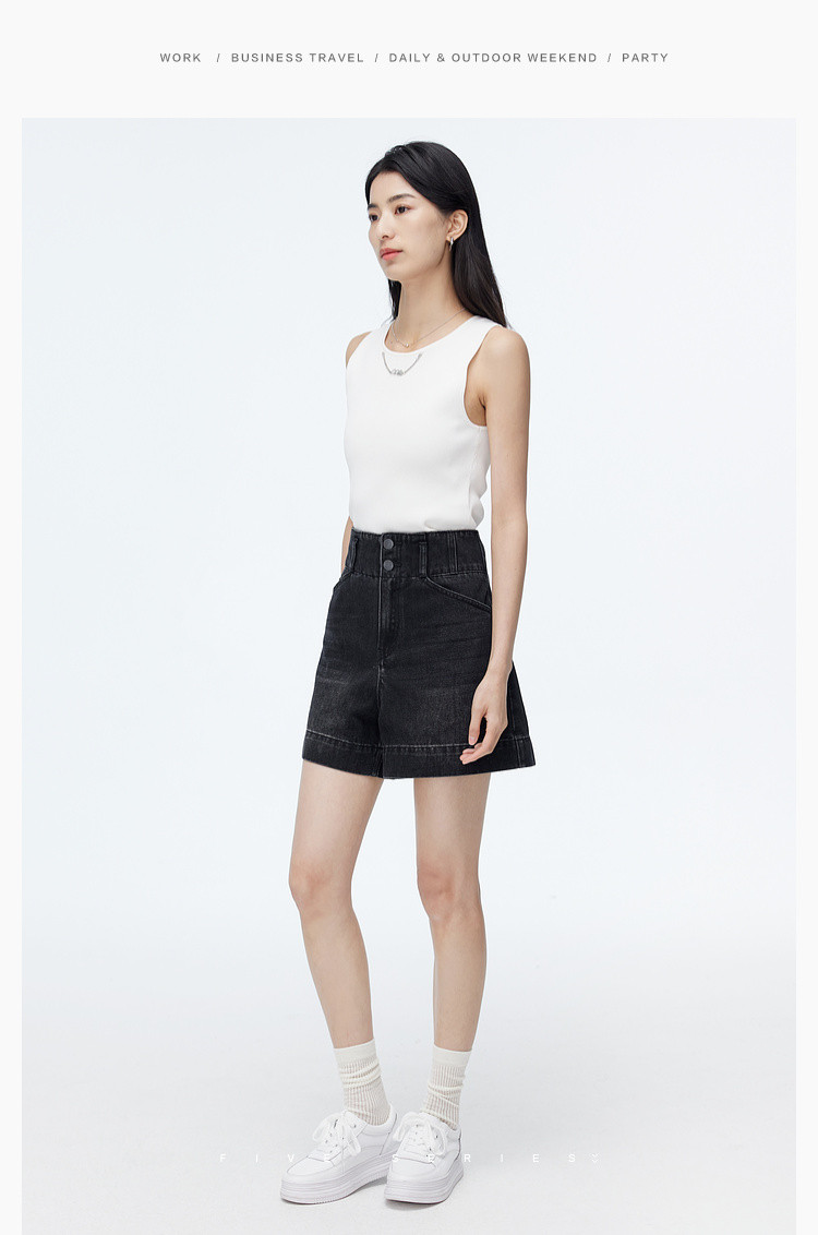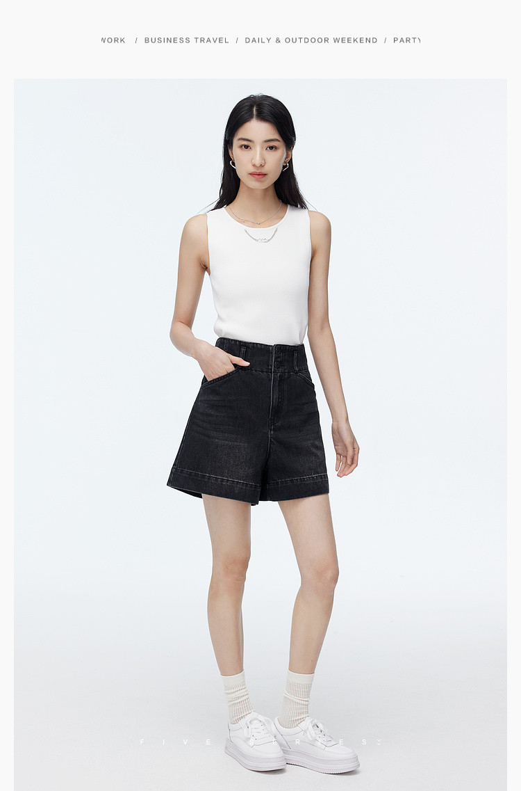 商品名称:时尚黑色牛仔裤短裤女夏季休闲小个子显瘦显高a字高腰阔腿裤子女 575555