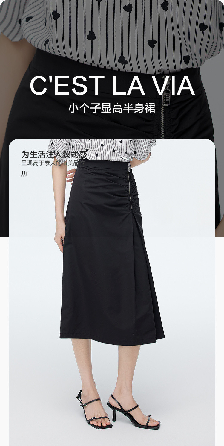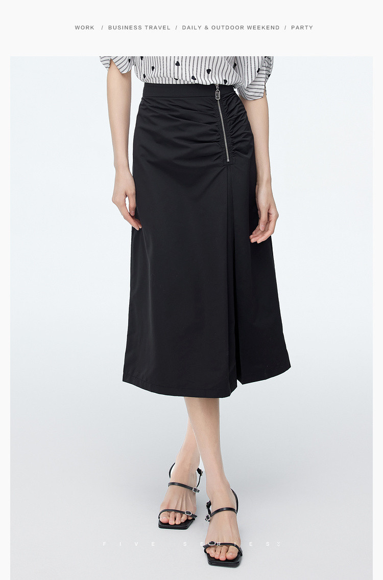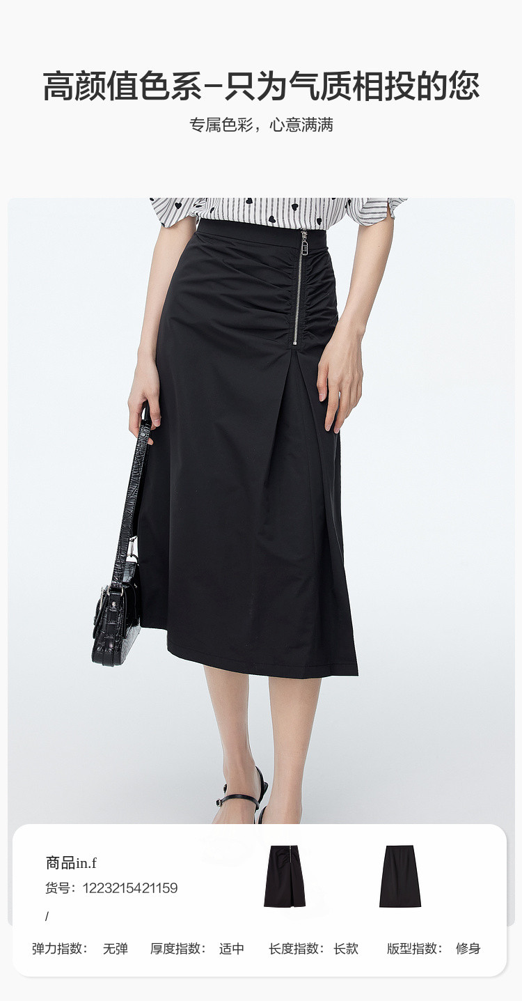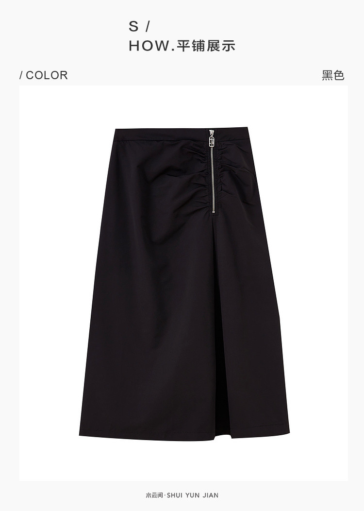 商品名称:中长款纯色半身裙女夏季休闲收褶设计感裙子百搭高腰a字裙女 630787