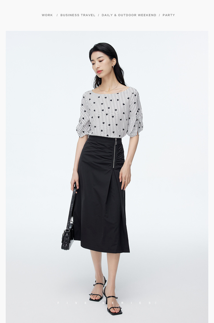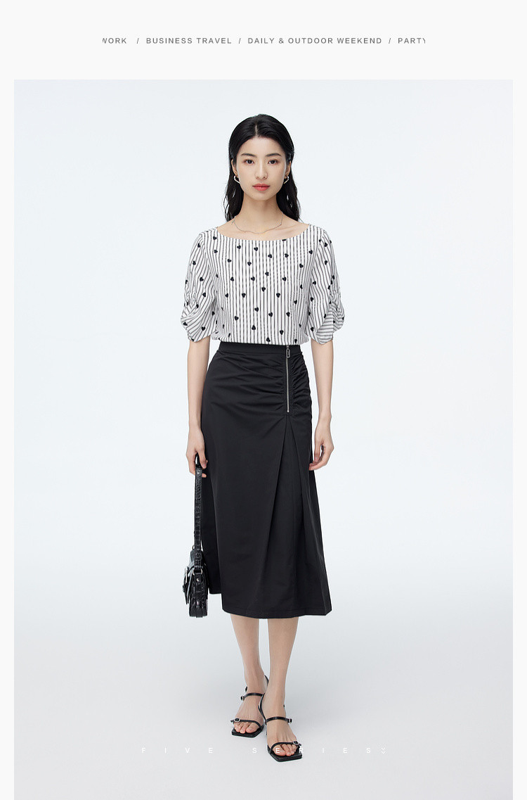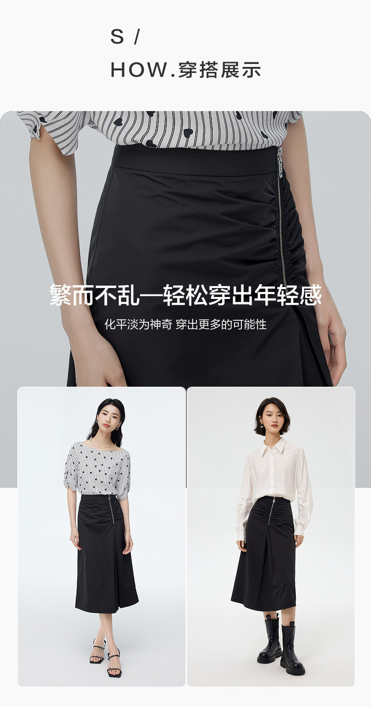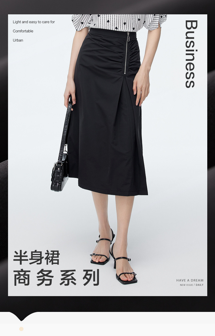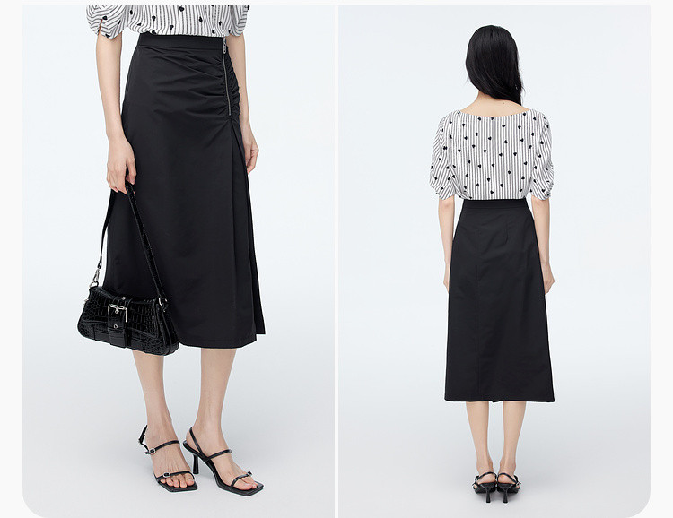 商品名称:中长款纯色半身裙女夏季休闲收褶设计感裙子百搭高腰a字裙女 630787