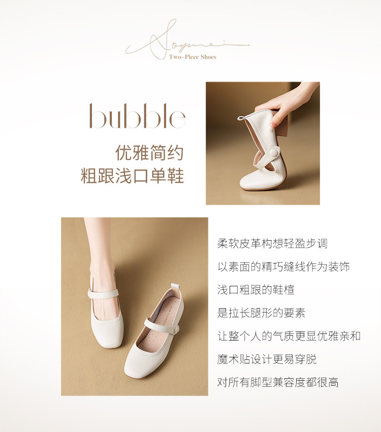 【优雅方头】百搭玛丽珍女鞋浅口单鞋女夏季高级感粗跟单鞋单女鞋 528640