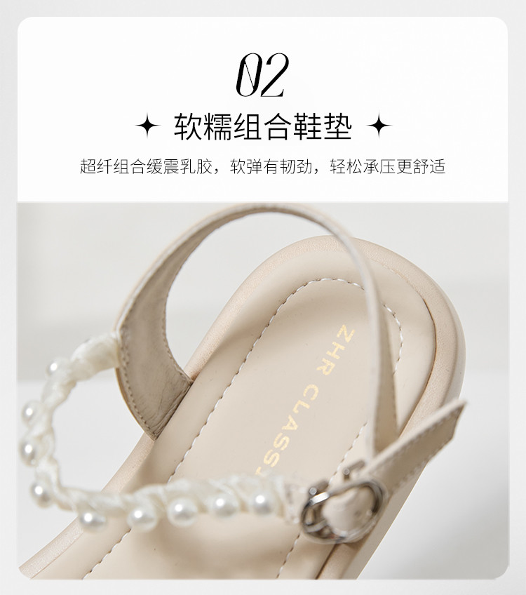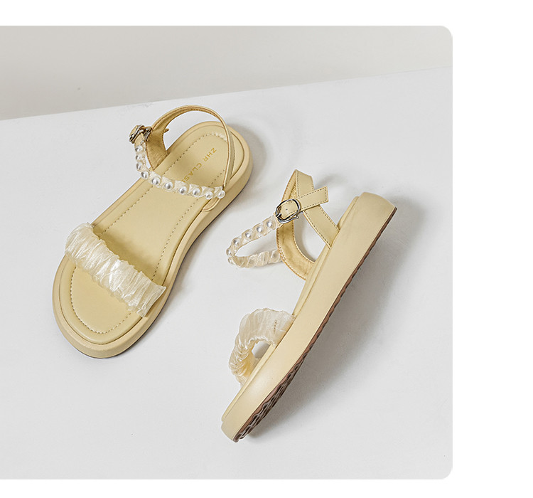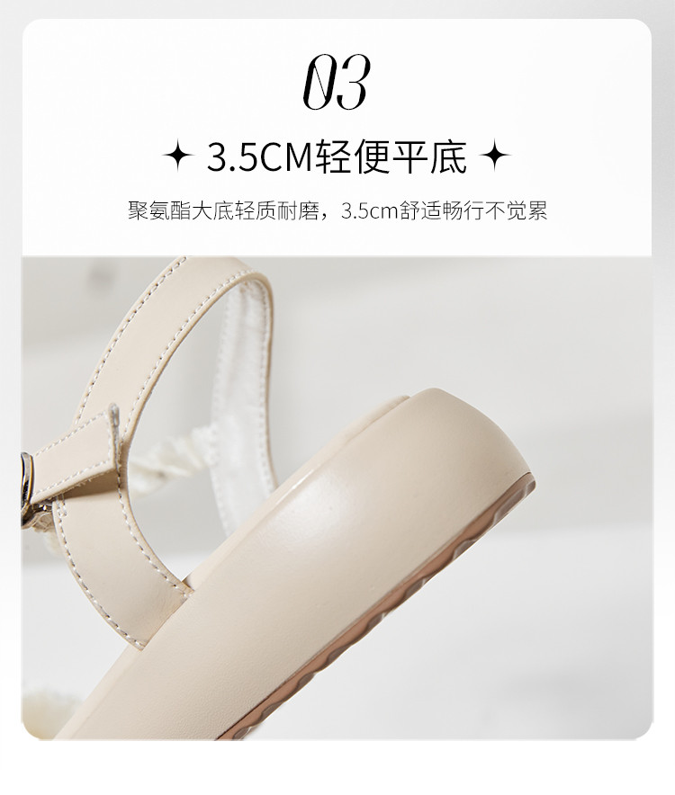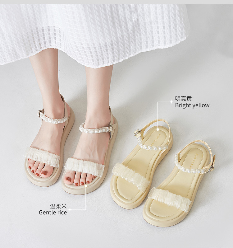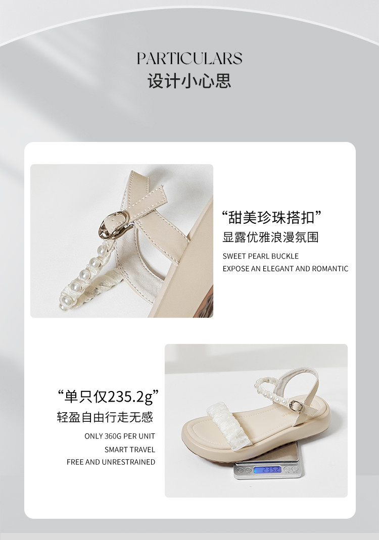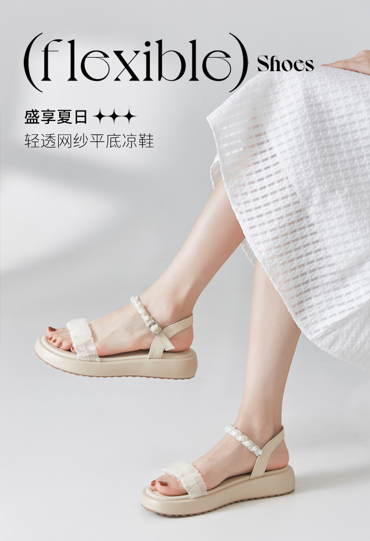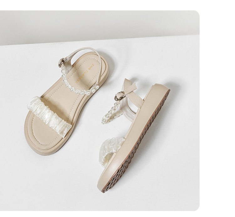 商品名称:【珍珠饰扣】一字带舒适平底凉鞋女款高级感夏季凉鞋女时尚女凉鞋 964416