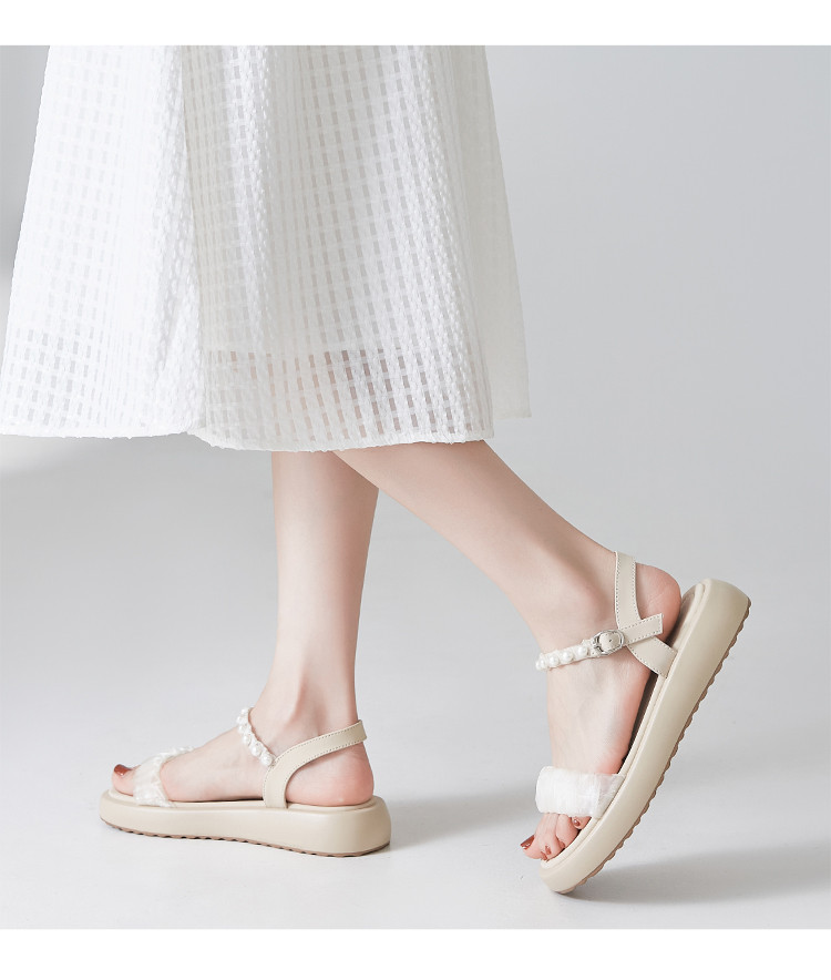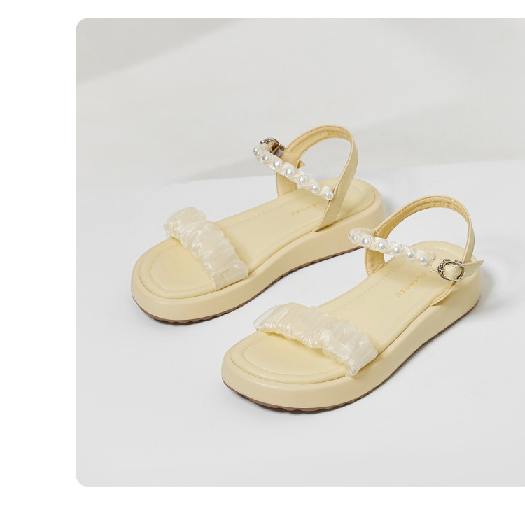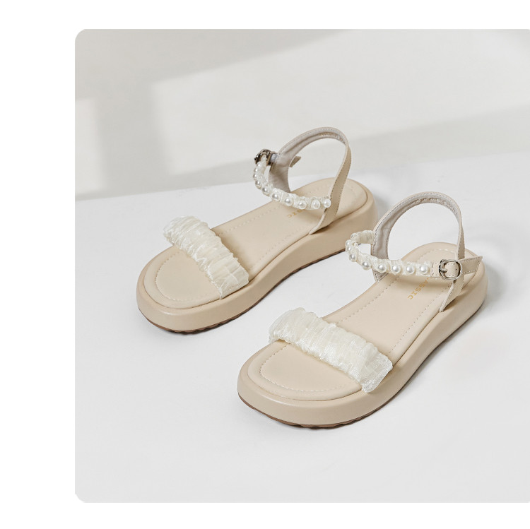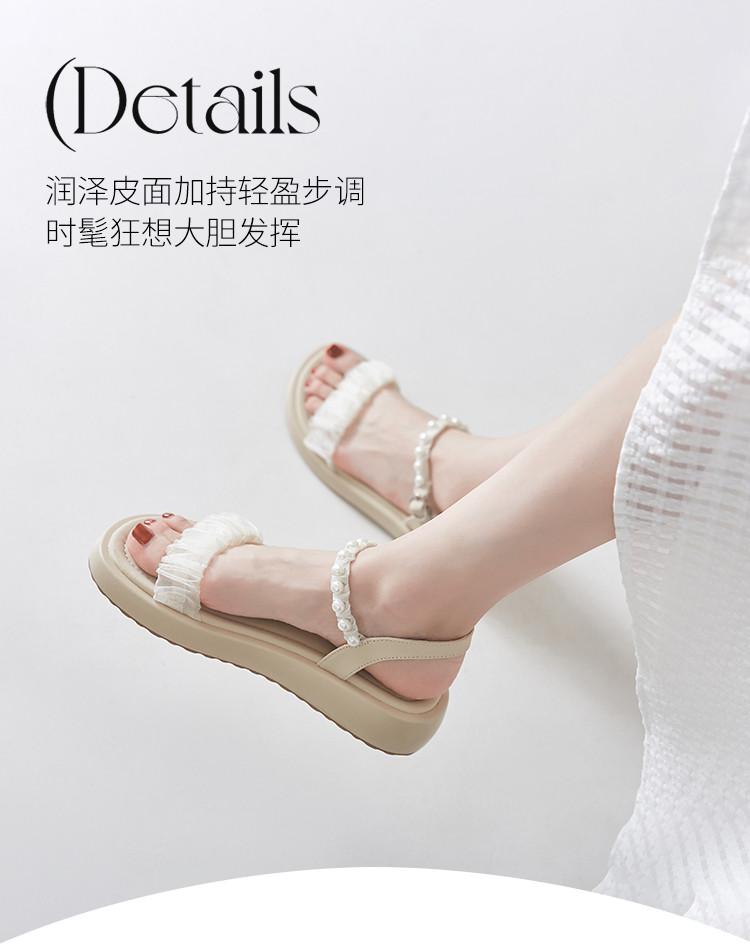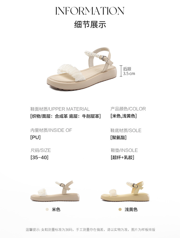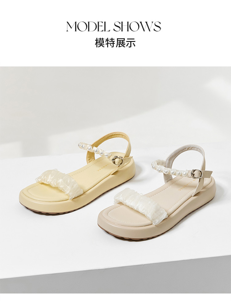 商品名称:【珍珠饰扣】一字带舒适平底凉鞋女款高级感夏季凉鞋女时尚女凉鞋 964416