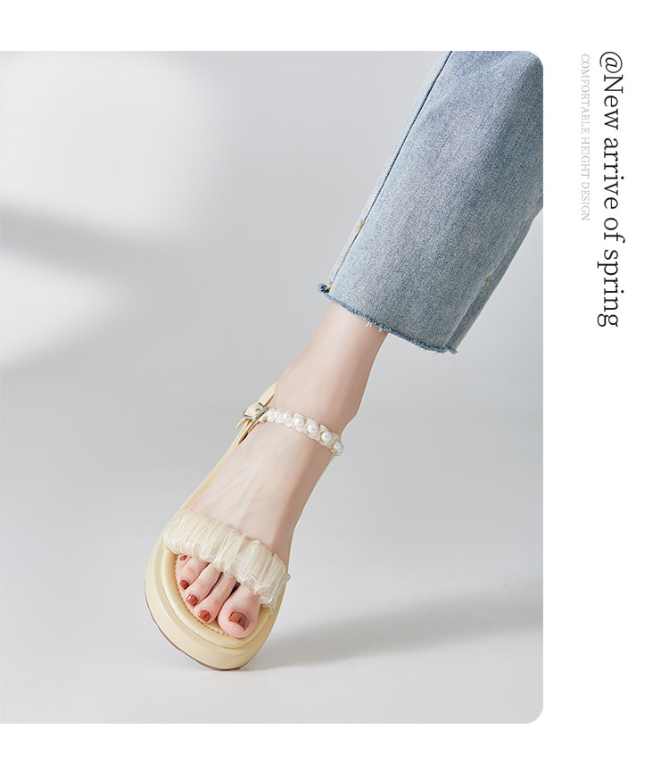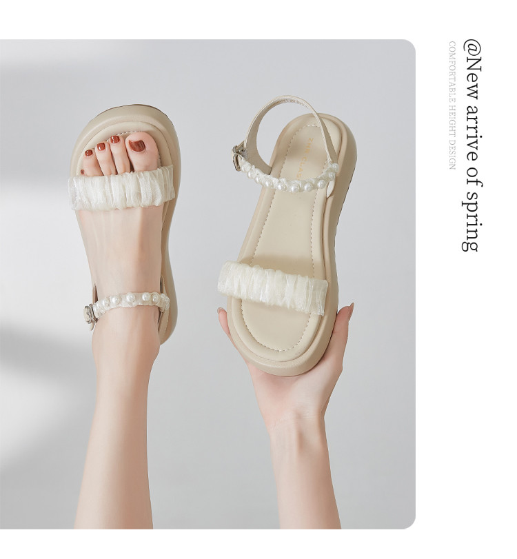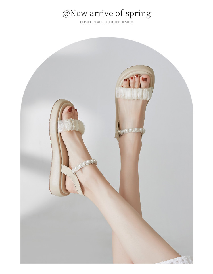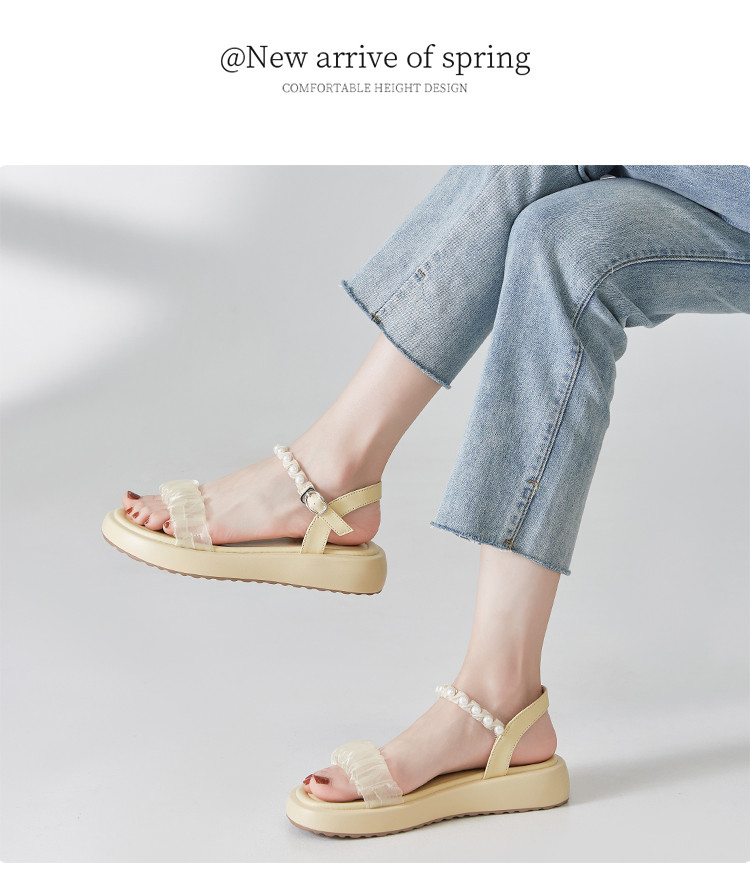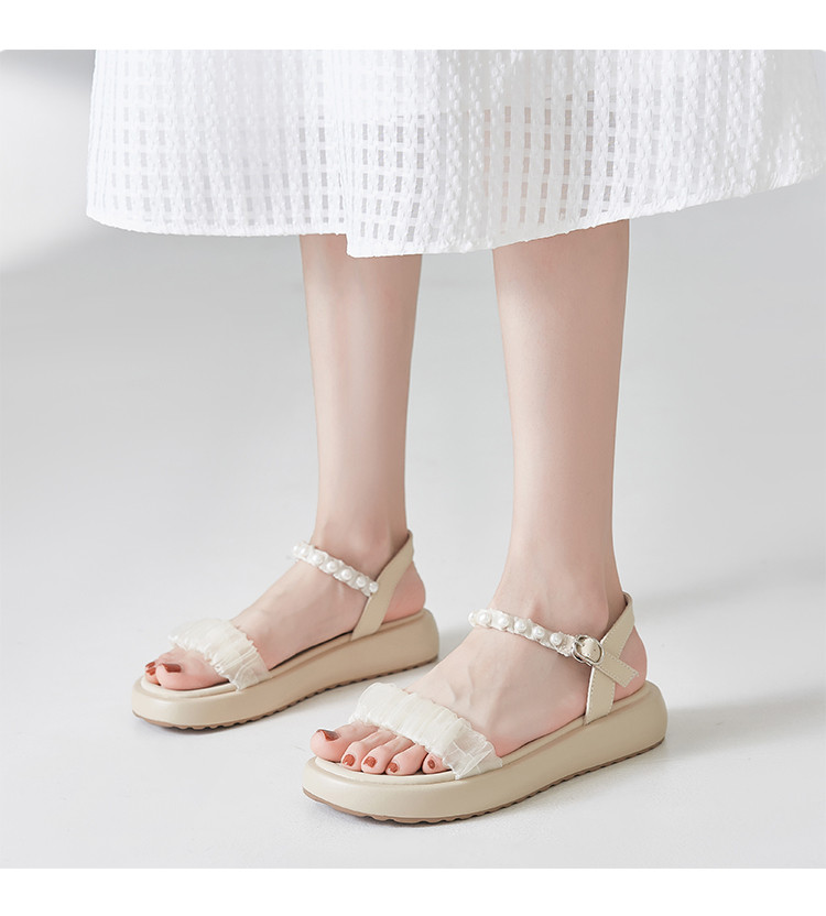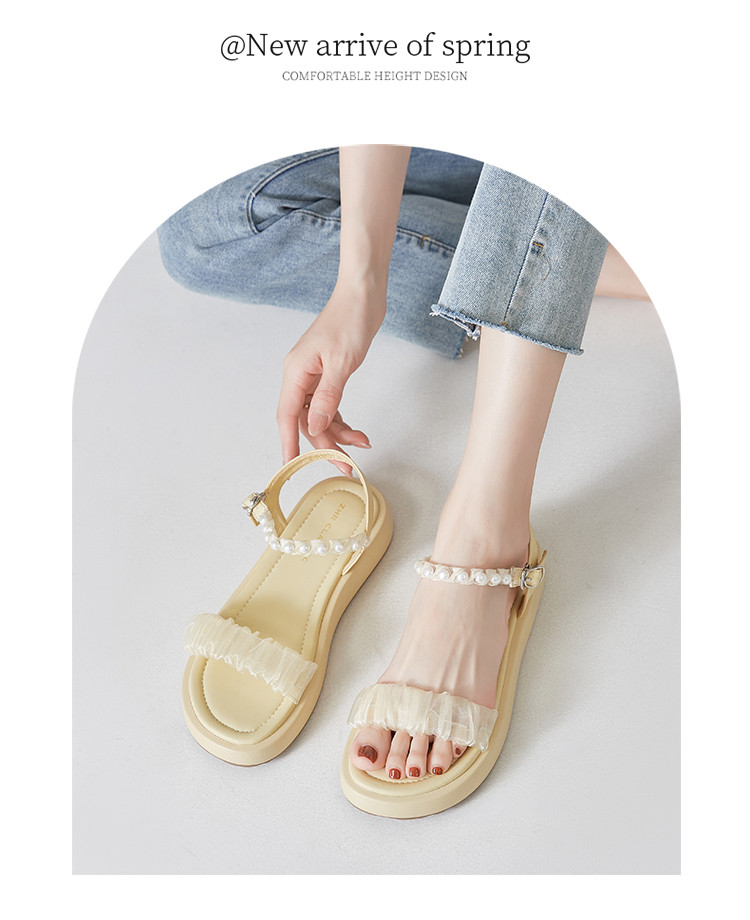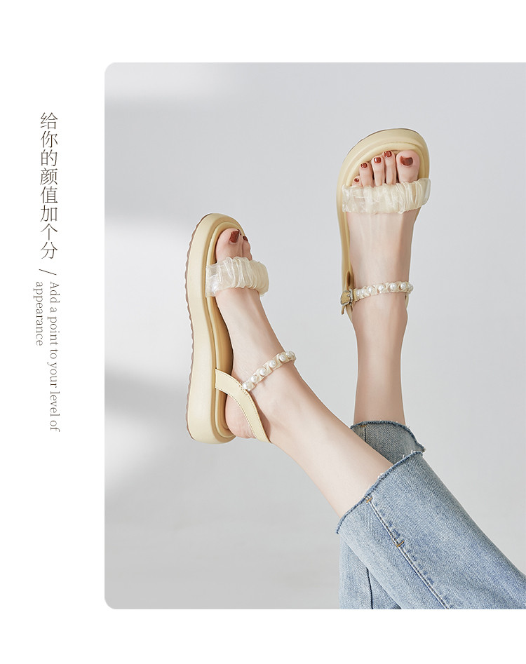 商品名称:【珍珠饰扣】一字带舒适平底凉鞋女款高级感夏季凉鞋女时尚女凉鞋 964416