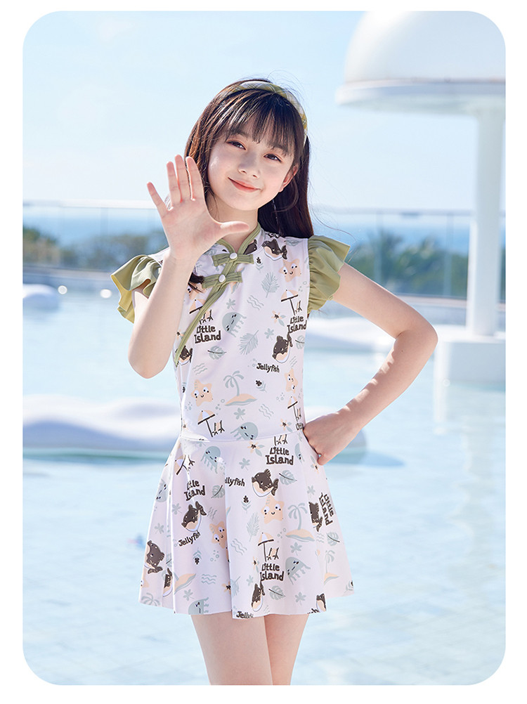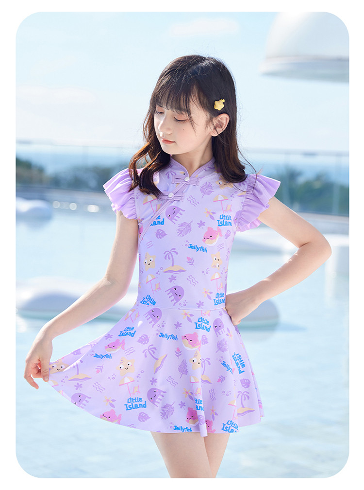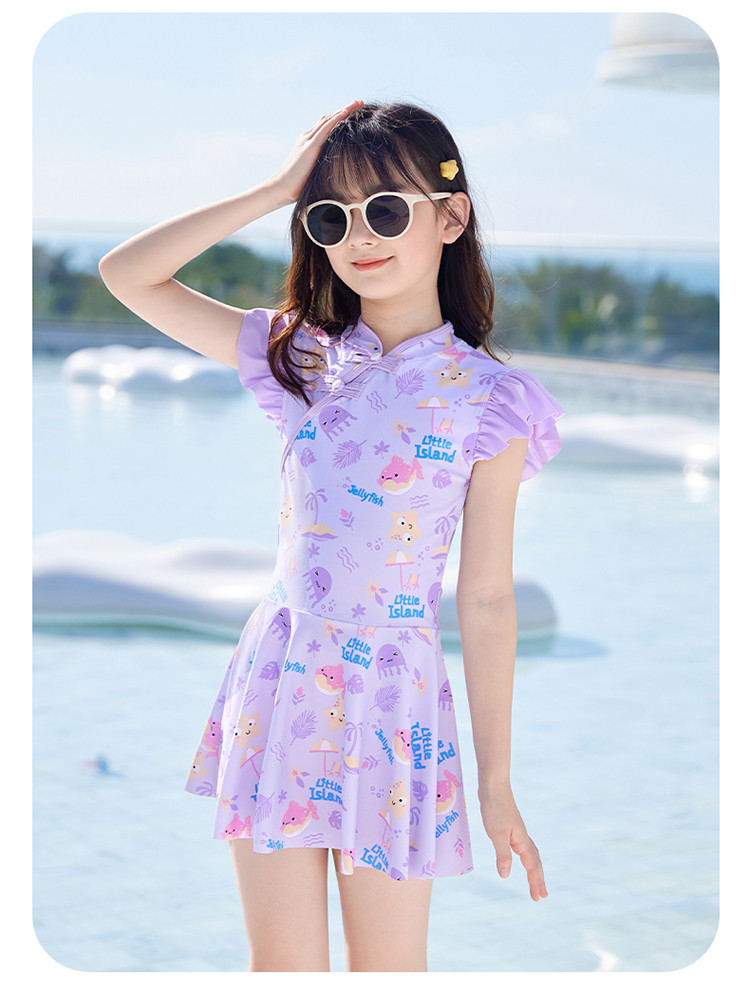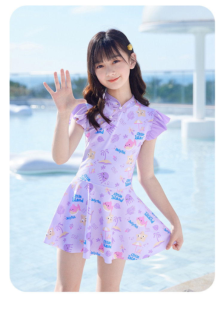 儿童泳衣女童夏季女孩连体中国风中大童宝宝可爱泳装温泉女童泳衣 875539