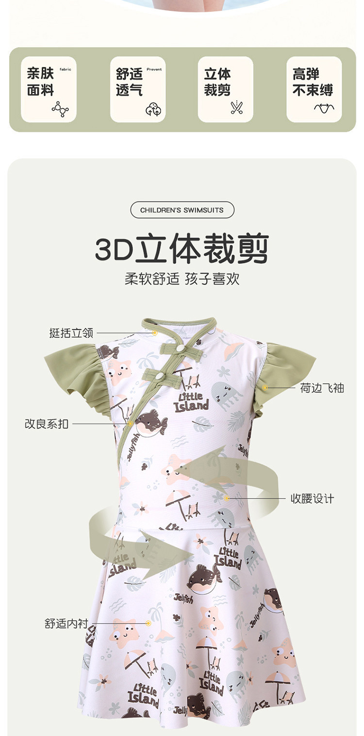 商品名称:儿童泳衣女童夏季女孩连体中国风中大童宝宝可爱泳装温泉女童泳衣 875539