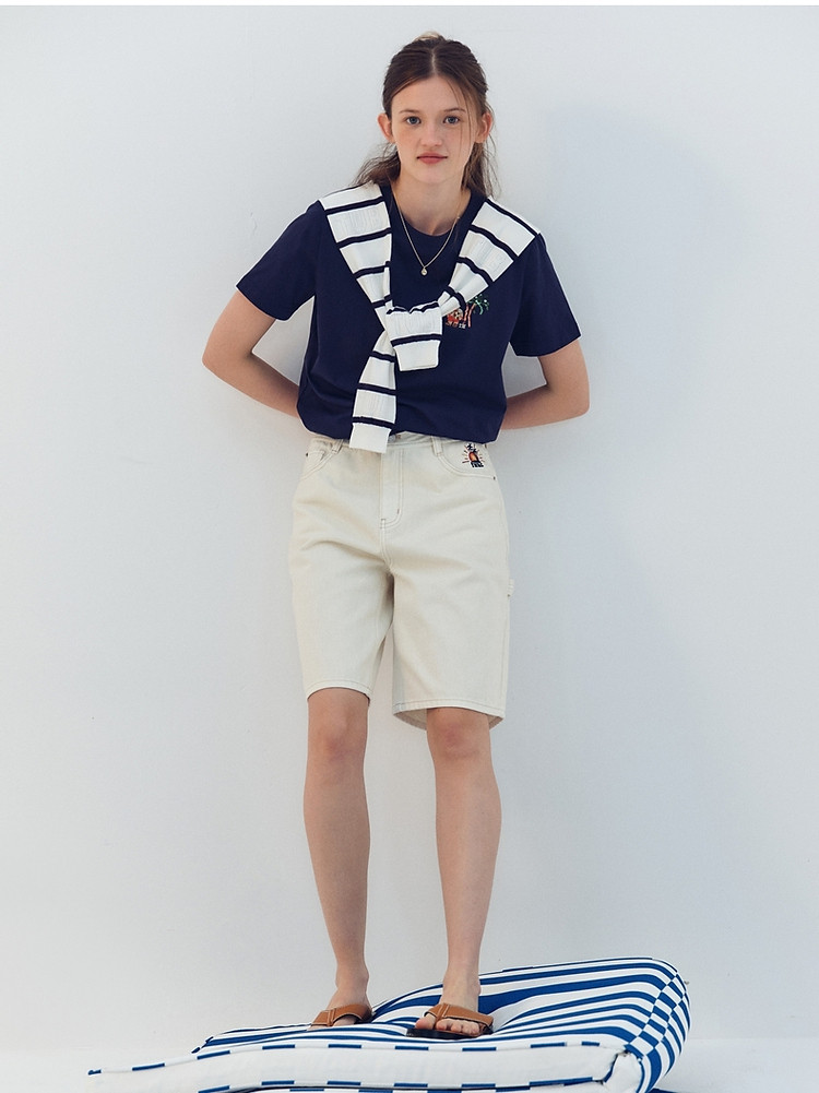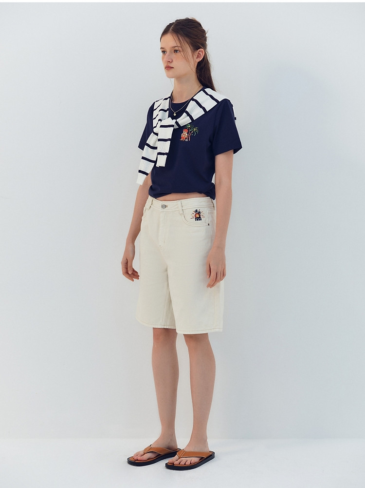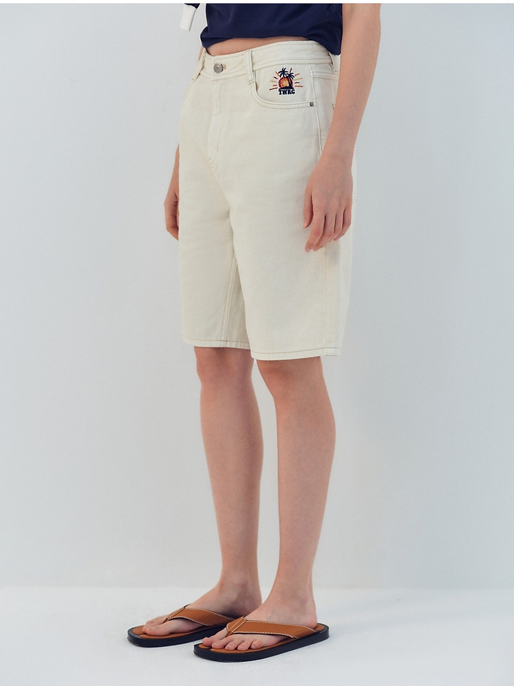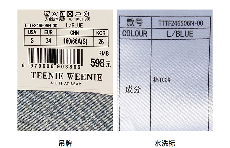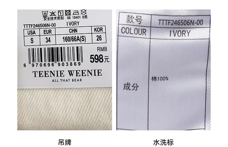 商品名称:小熊夏季款五分牛仔短裤白色裤子宽松休闲女士 194113