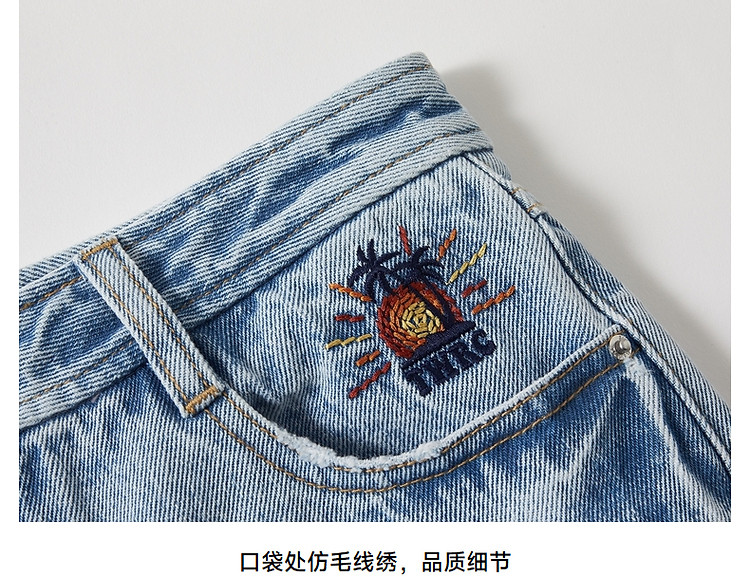 做旧牛仔短裤潮牌宽松情侣复古五分裤街头潮牌直筒裤 723863