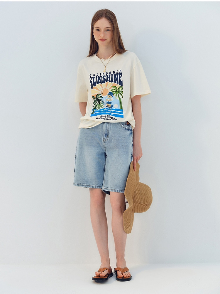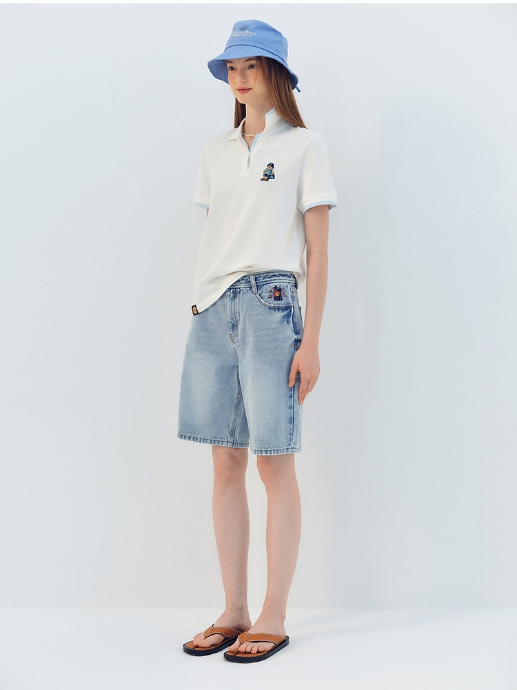 小熊夏季款五分牛仔短裤白色裤子宽松休闲女士 194113