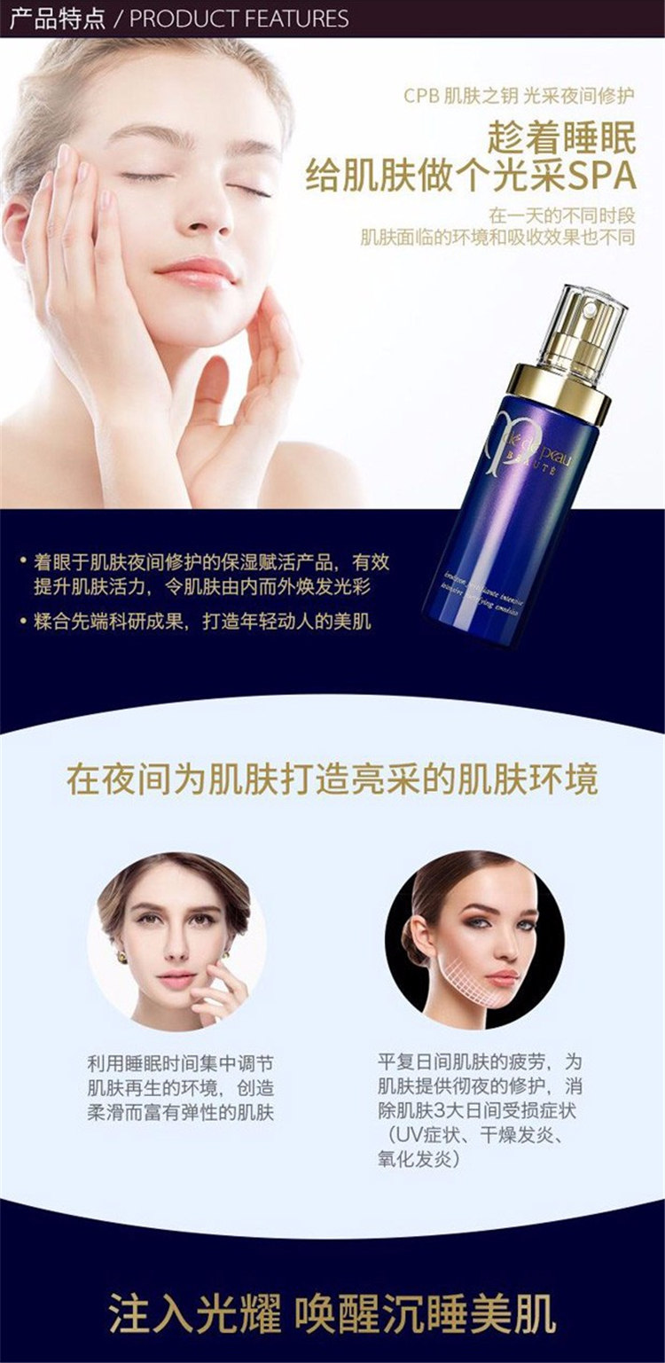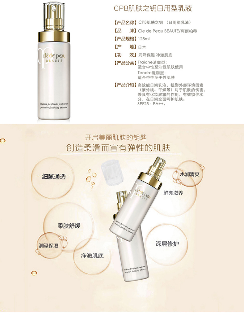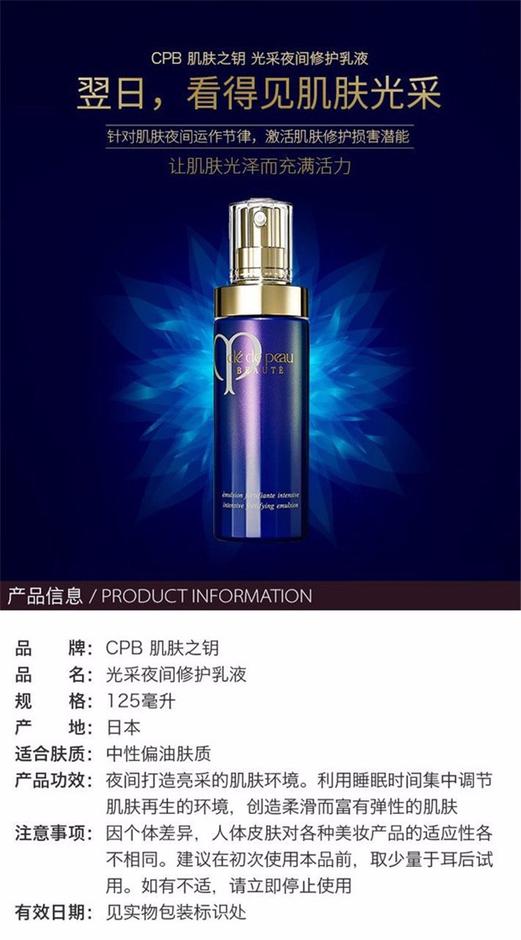 商品名称:CPB/肌肤之钥 乳液两件套 光采防护日间乳液清爽型125ml+光采夜间修护乳125ml