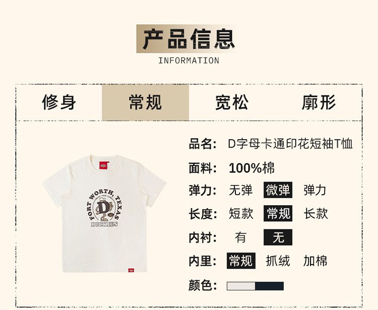 商品名称:Dickies春夏日常 前胸D字母印花卡通图案女式短袖 867650