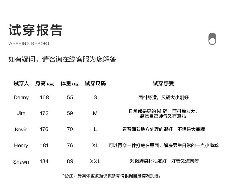 | XL(推荐75~82kg) | 73.5 | 46.4 | 106 | 23.5 | 111 | 108 | 180/96A |