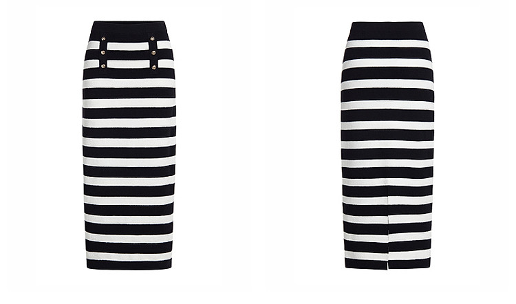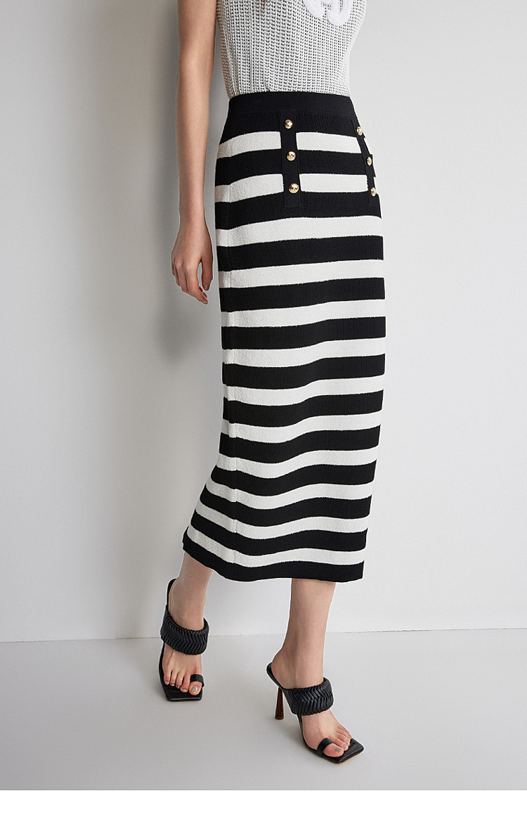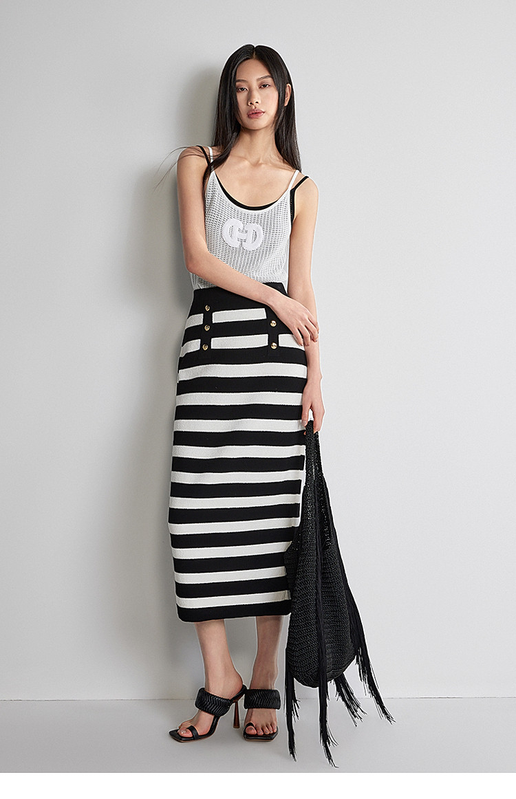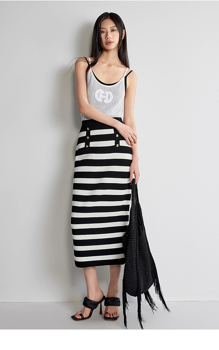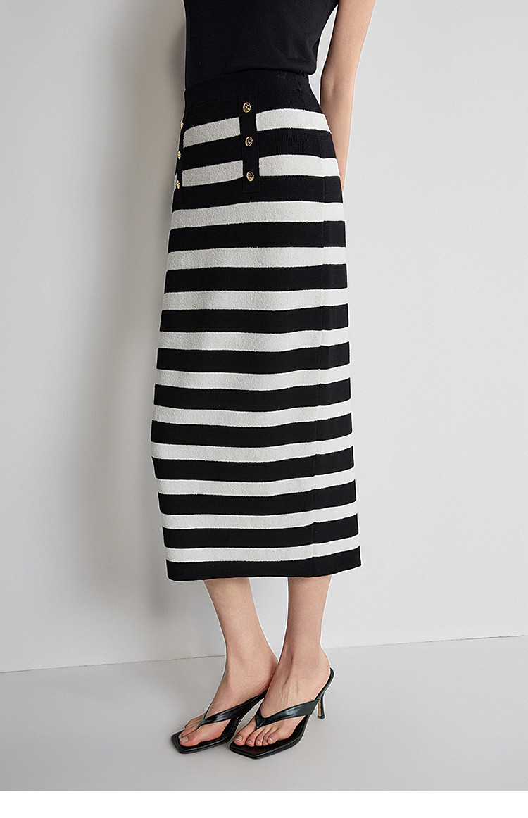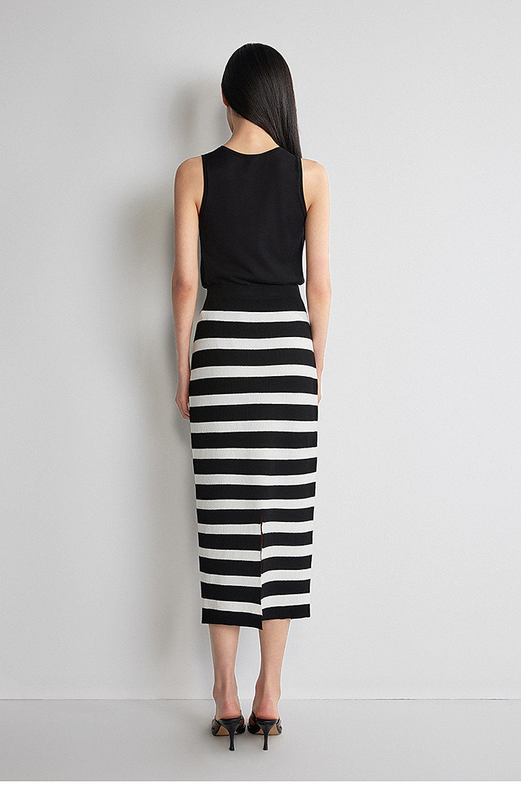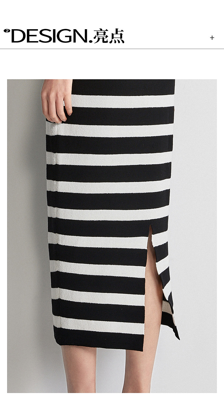 商品名称:弹力条纹针织半身裙 春装高腰开衩中长款 125519