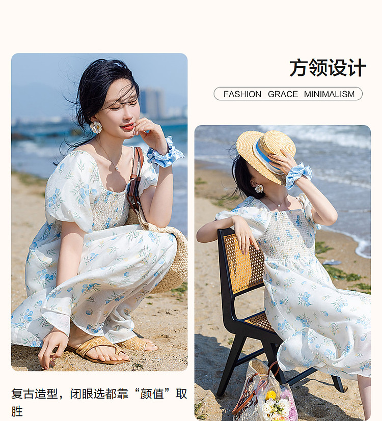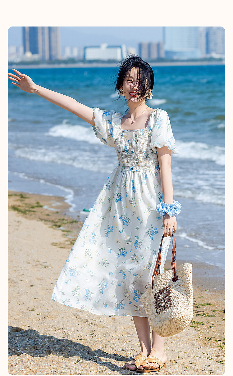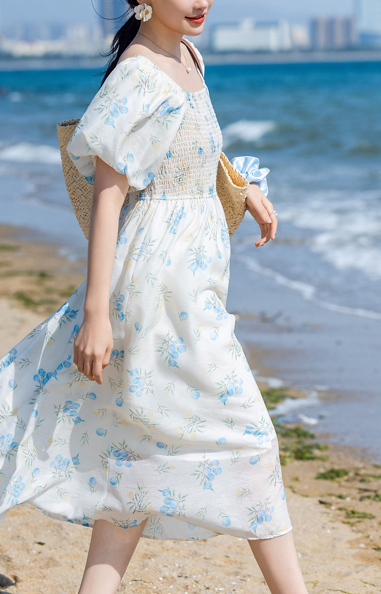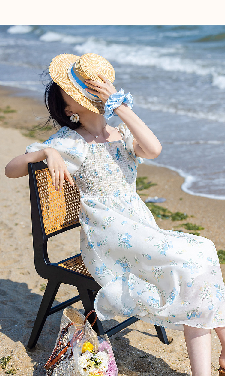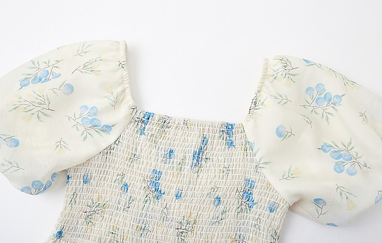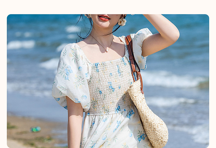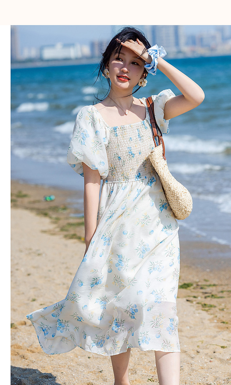 商品名称:【司马克松紧收腰工艺】夏南法假日轻薄雪纺碎花泡泡袖女式连衣裙 517441