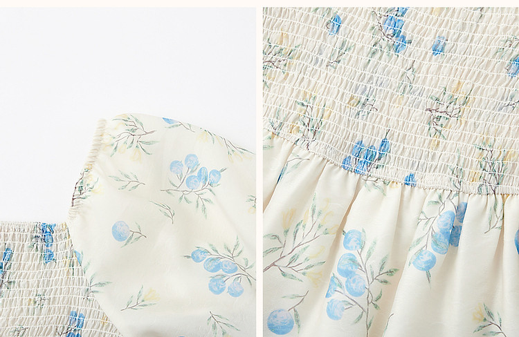 【司马克松紧收腰工艺】夏南法假日轻薄雪纺碎花泡泡袖女式连衣裙 517441