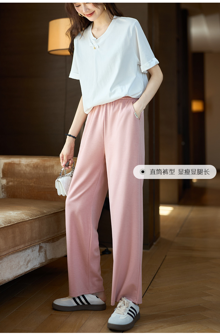 商品名称:轻薄透气长裤2025夏季新款宽松显瘦垂感直筒裤女士休闲裤阔腿裤 161417