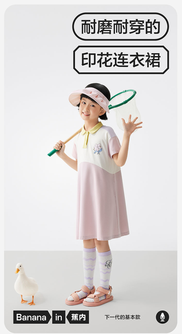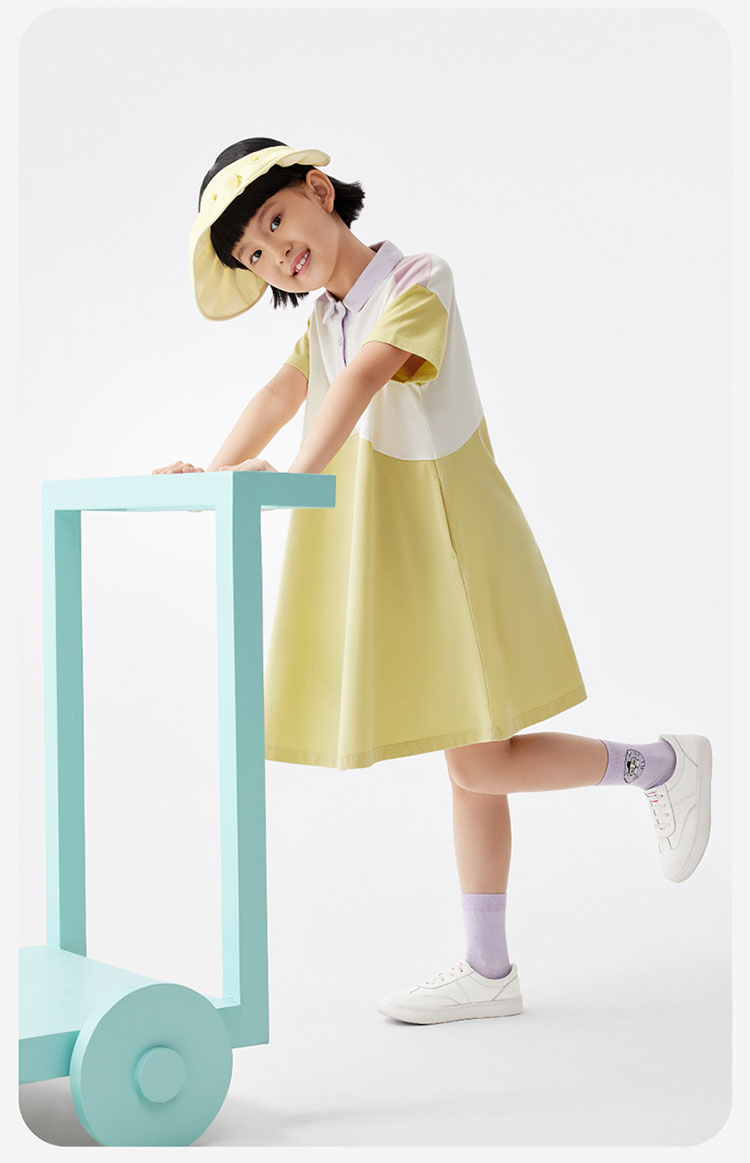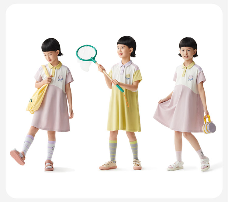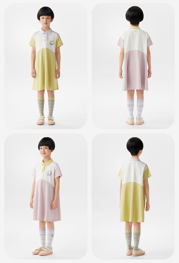 555Go女童连衣裙Polo领宝宝可爱印花公主裙儿童裙子学院 557189