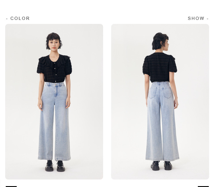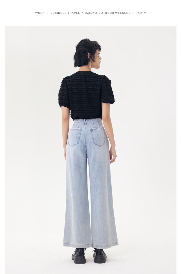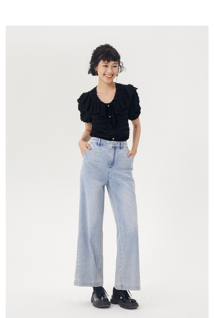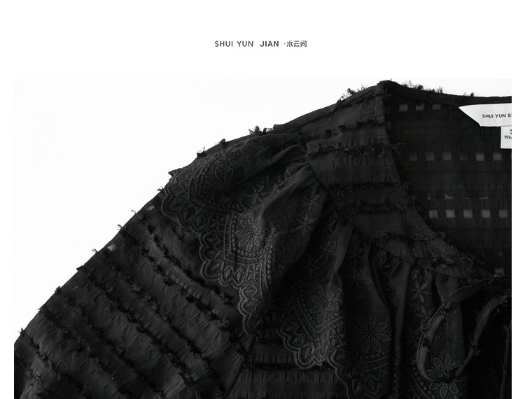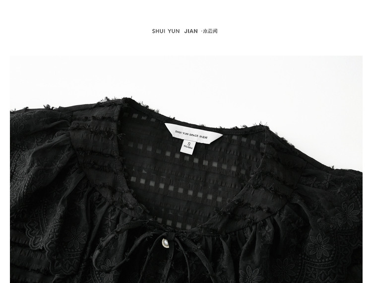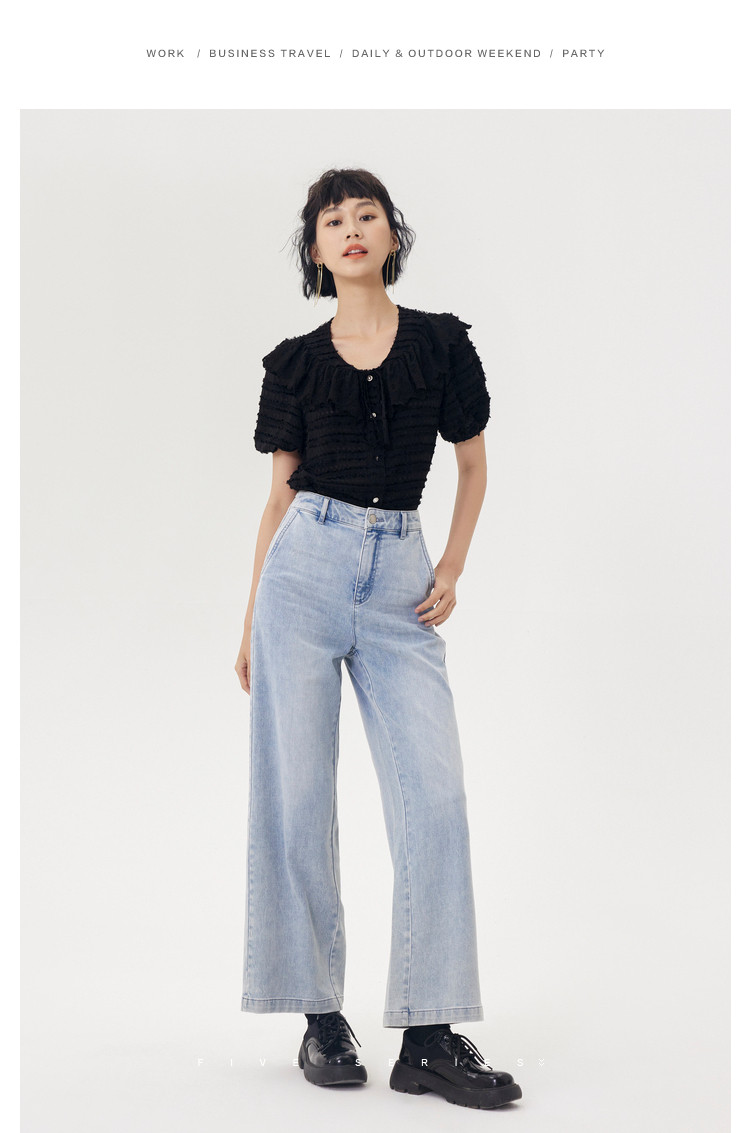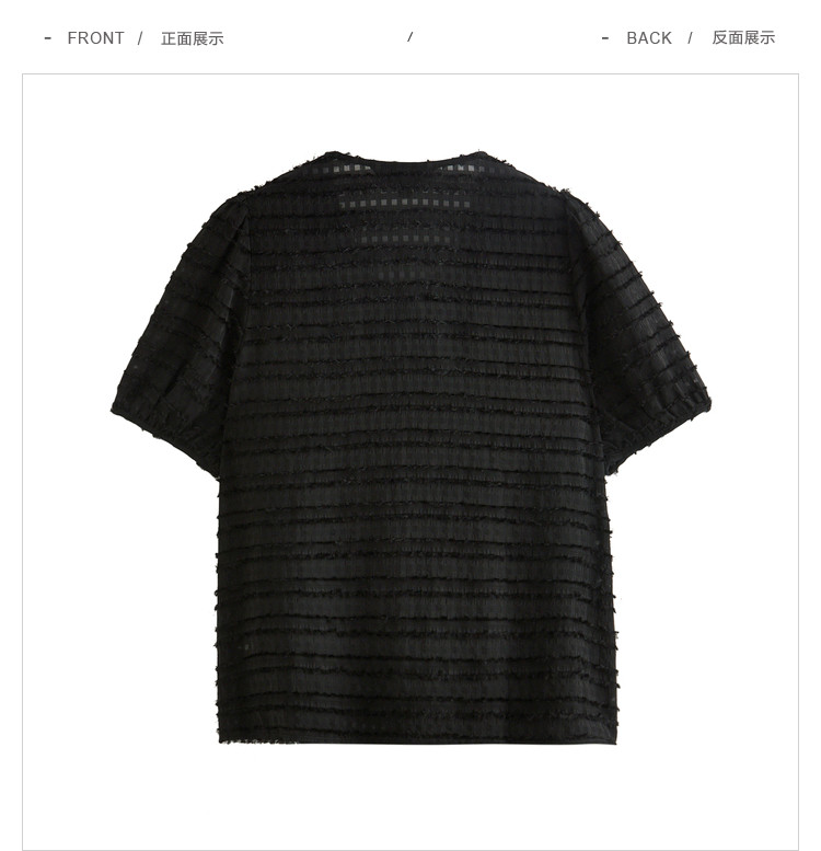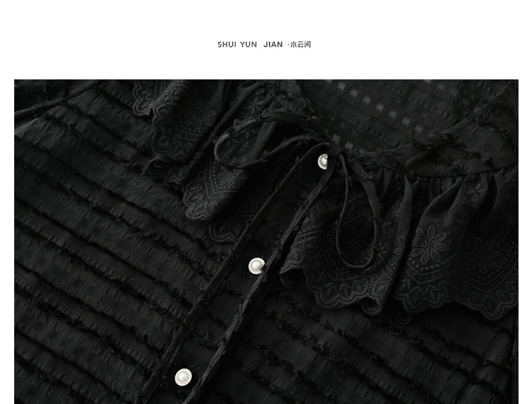 商品名称:浪漫花边拼接衬衫女夏季款气质泡泡袖单排扣圆领上衣女短袖衬衣 681923