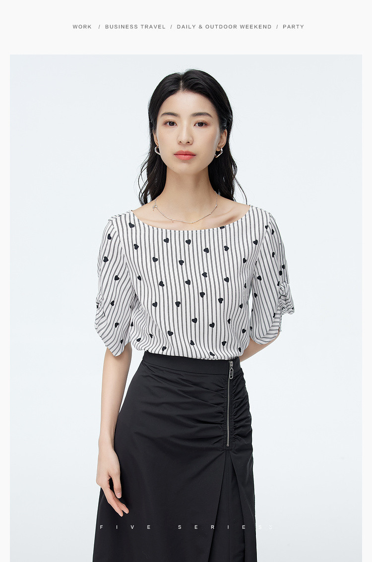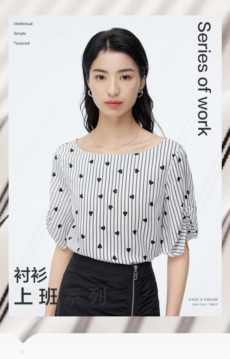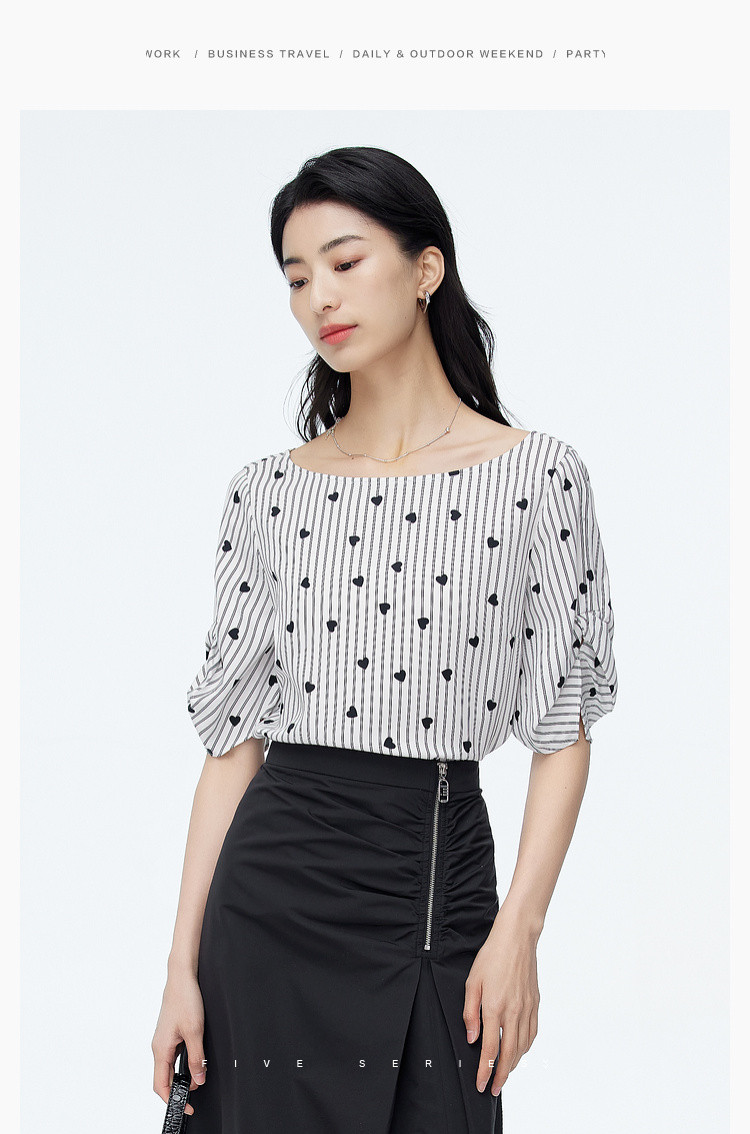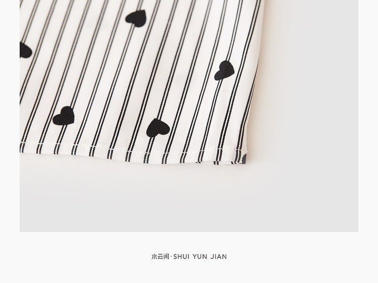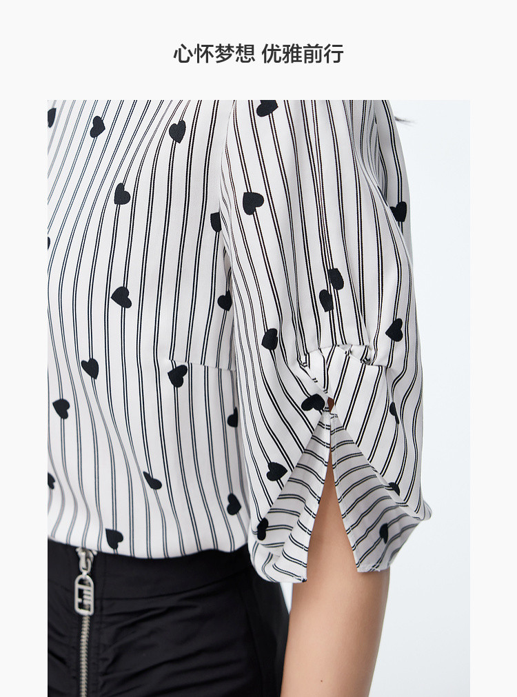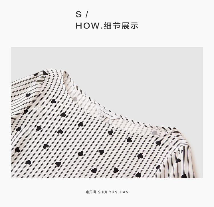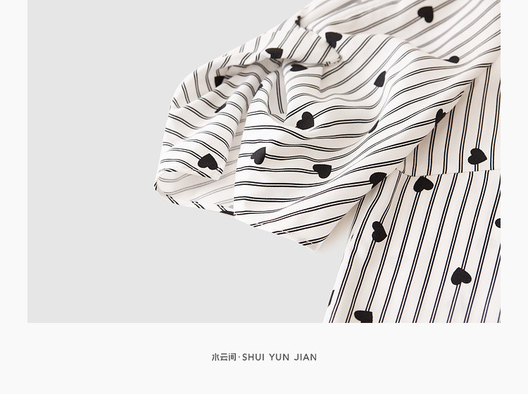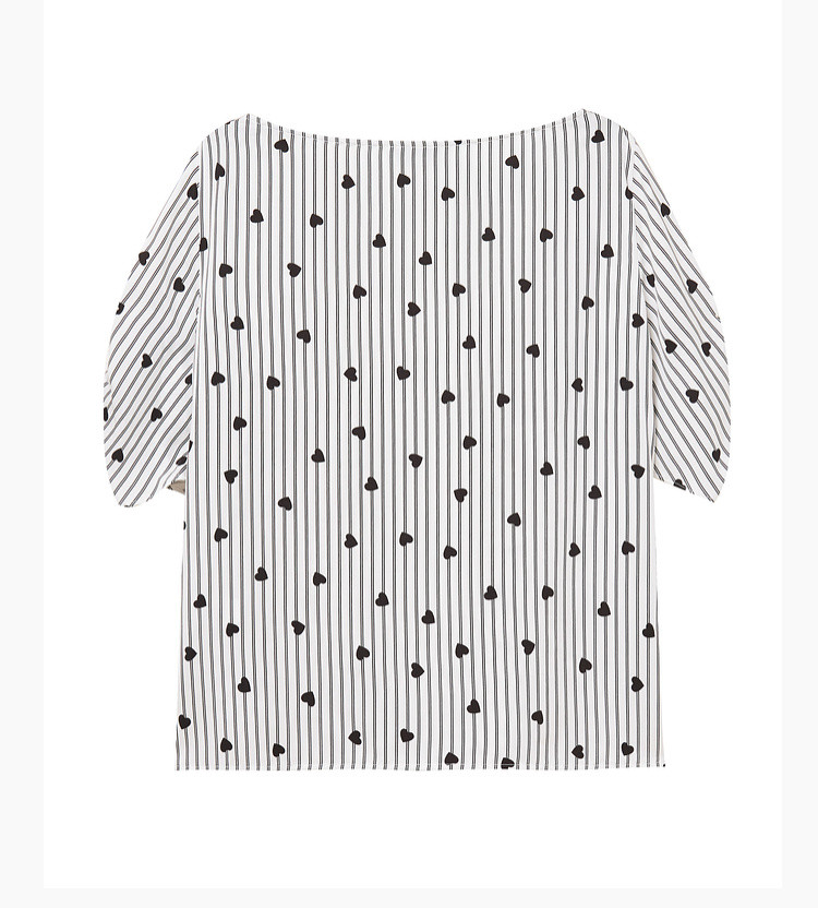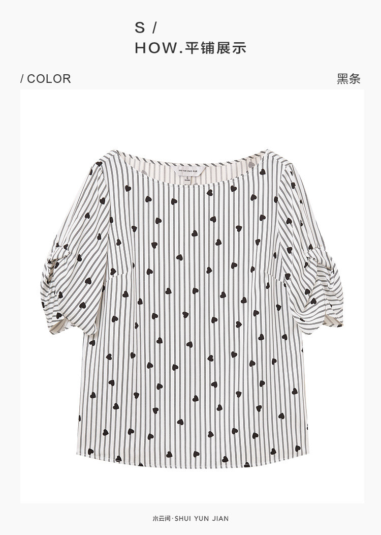 商品名称:爱心印花短袖衬衫女夏季气质天丝圆领上衣通勤条纹衬衣女 497731