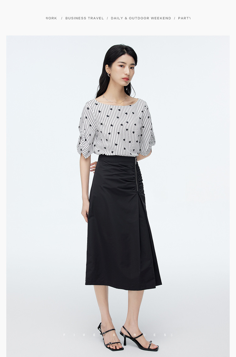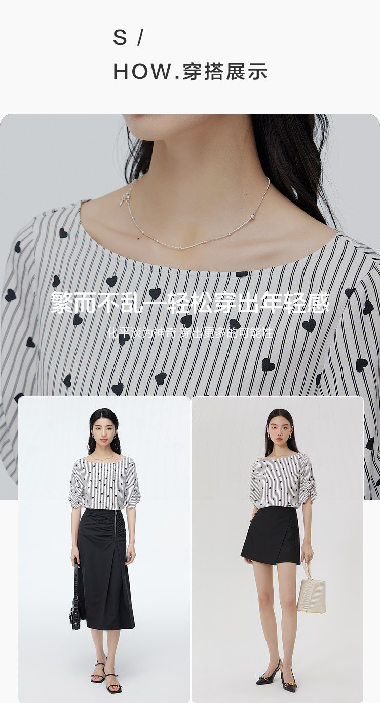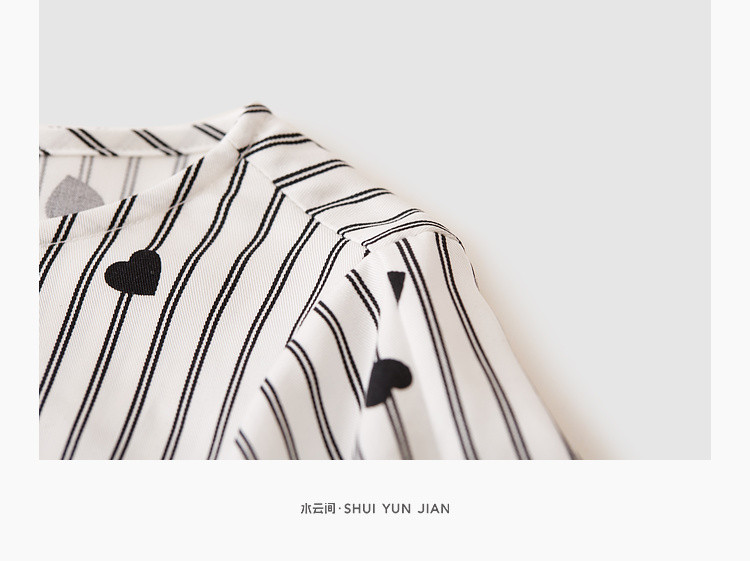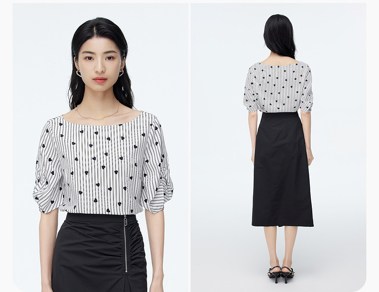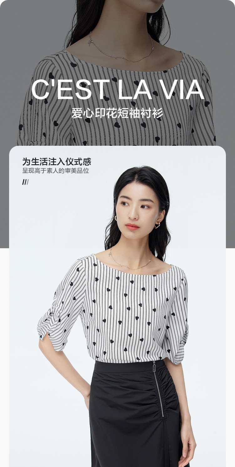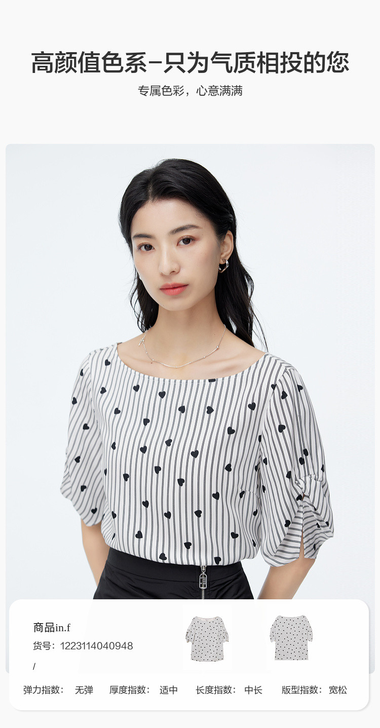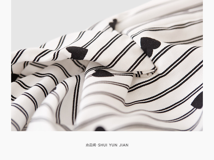 商品名称:爱心印花短袖衬衫女夏季气质天丝圆领上衣通勤条纹衬衣女 497731