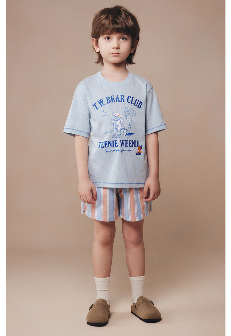 小熊童装夏季男童度假风纯棉圆领印花T恤 340225