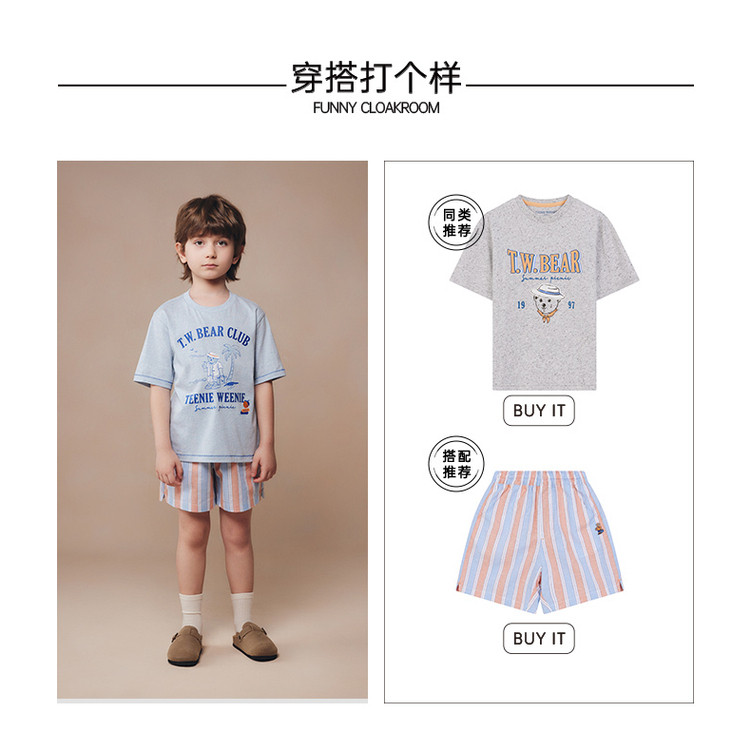 商品名称:小熊童装夏季男童度假风纯棉圆领印花T恤 340225