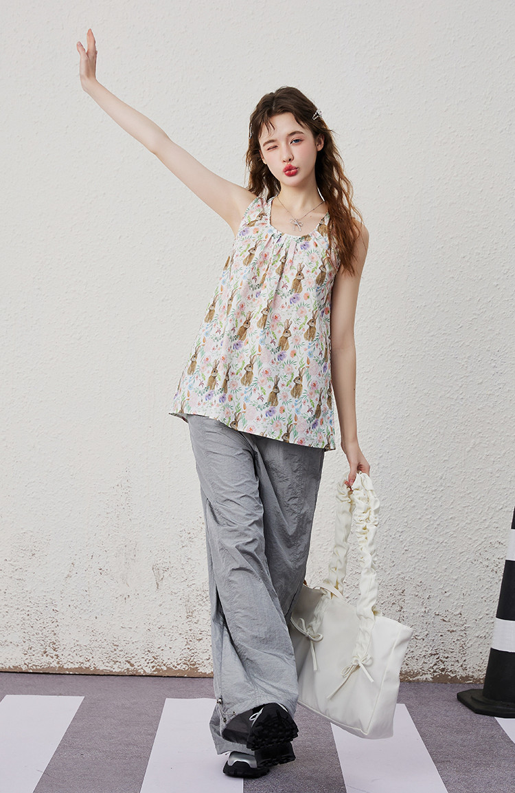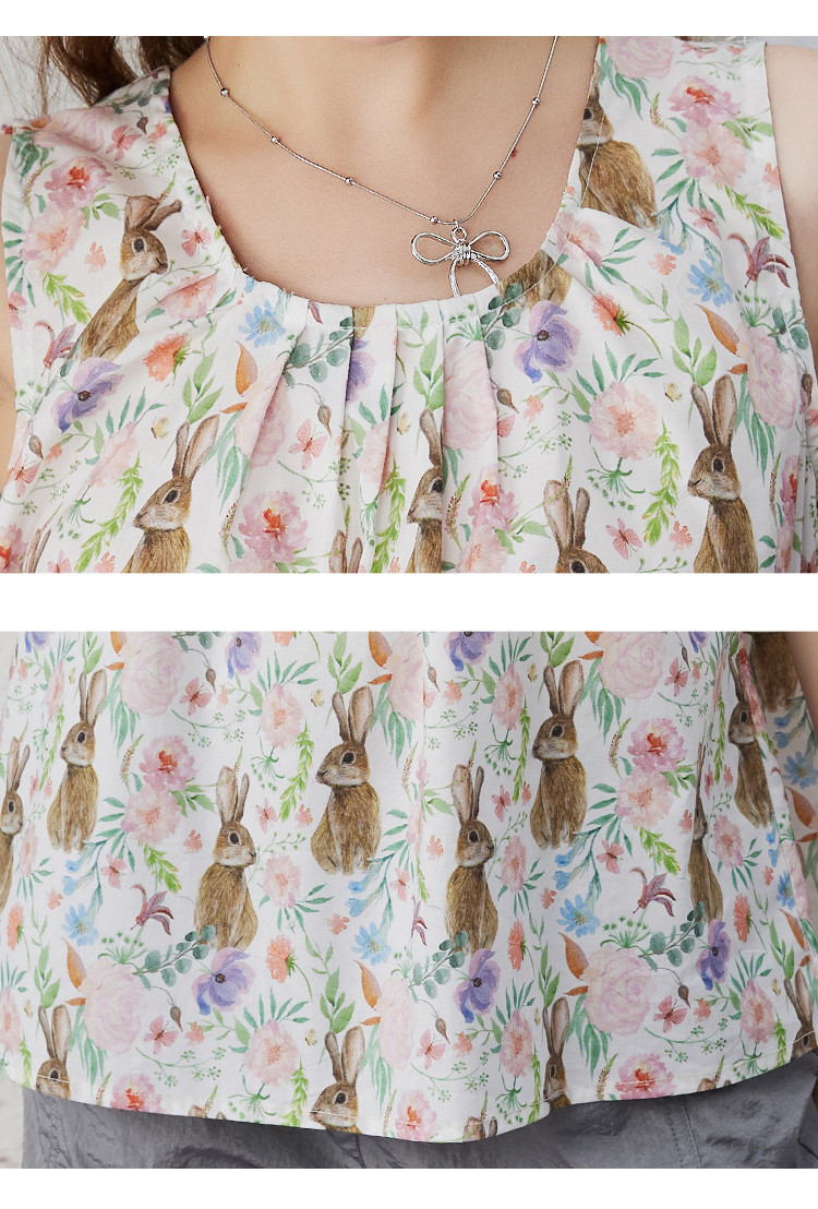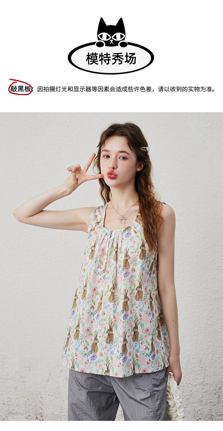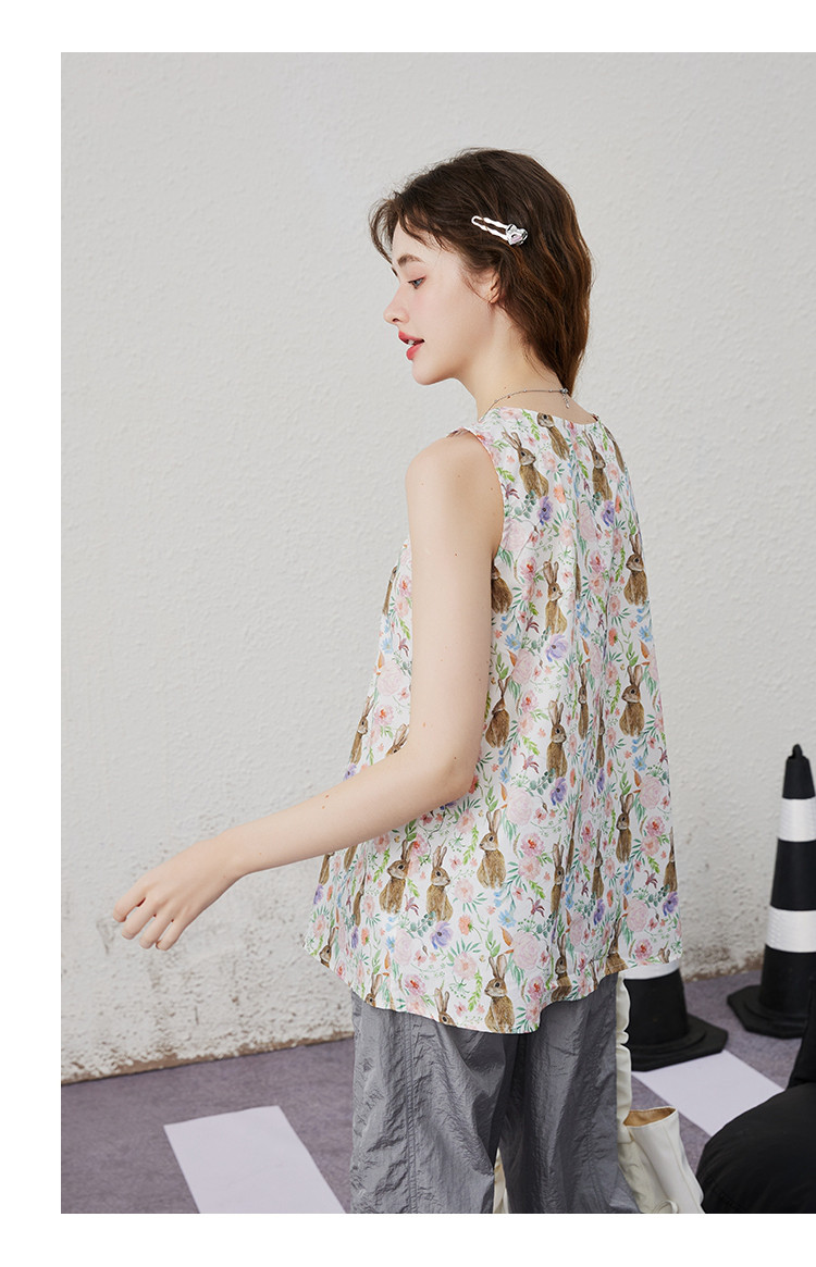 商品名称:【100%棉】法式甜美满印花女式背心夏季个性气质小衫 202525